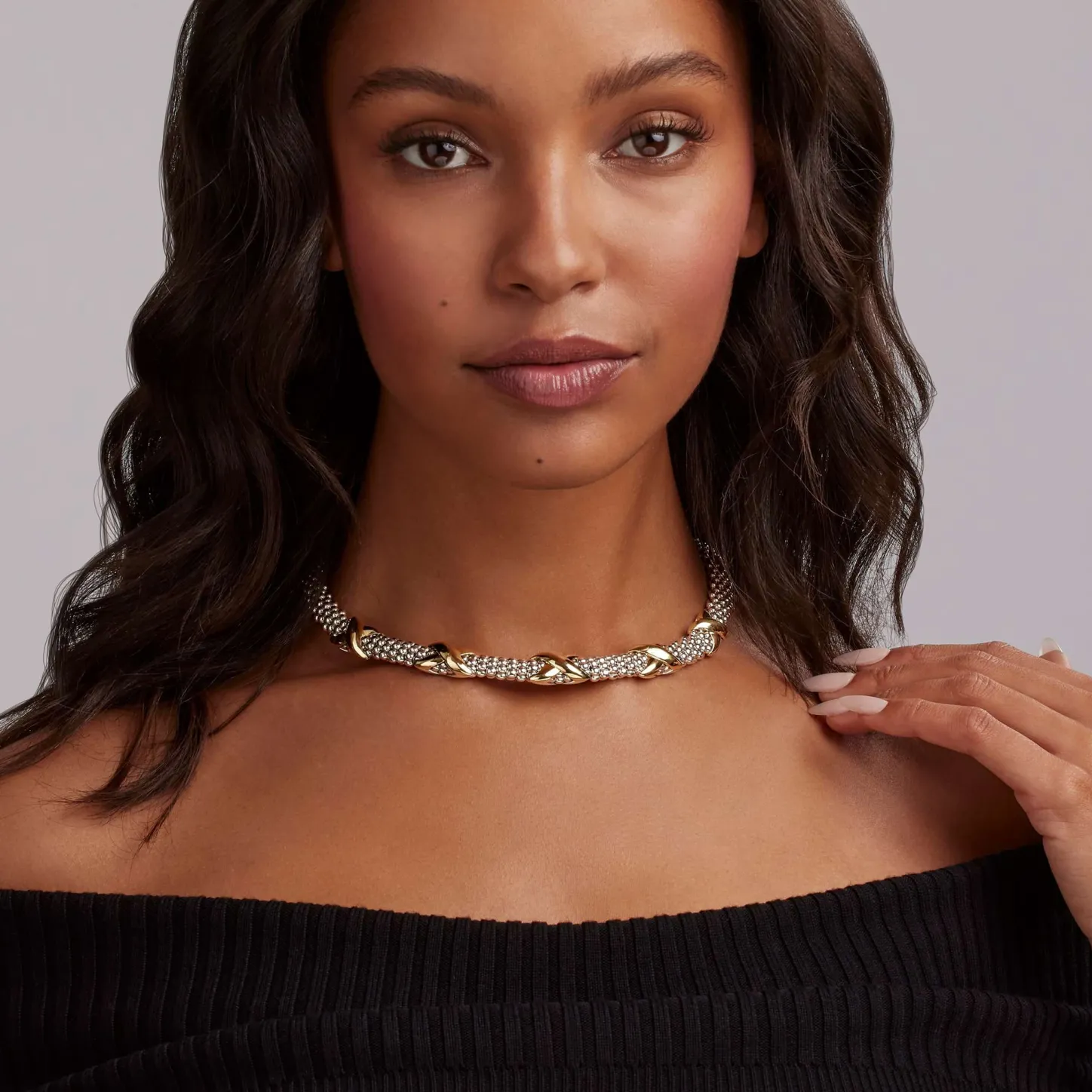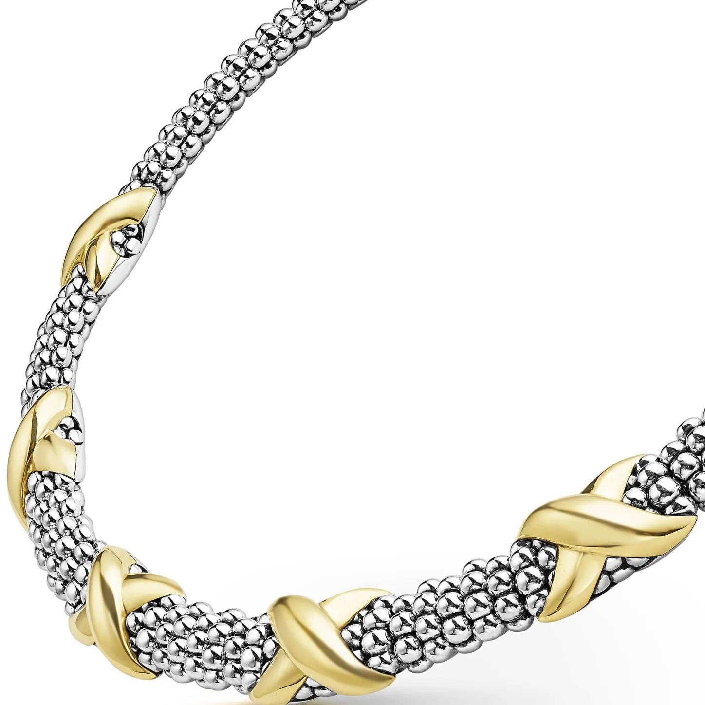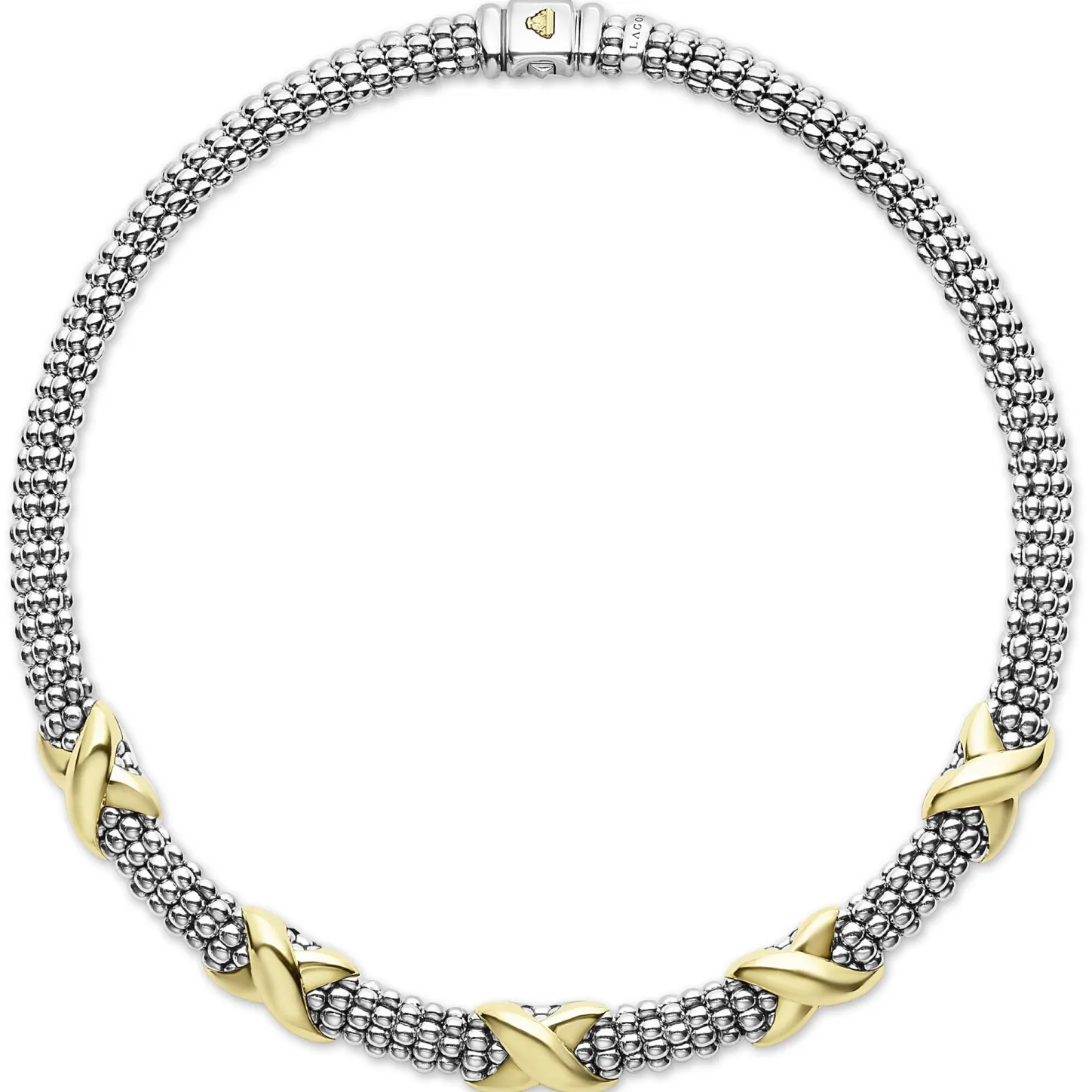 Sterling Silver Caviar Beading Accented By Five 18K Gold X Stations Form This Detailed Lagos Necklace.