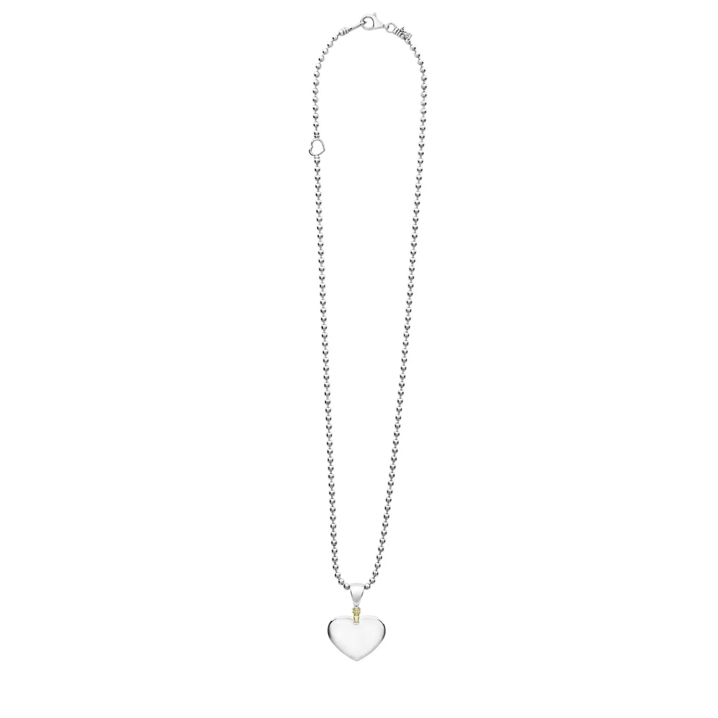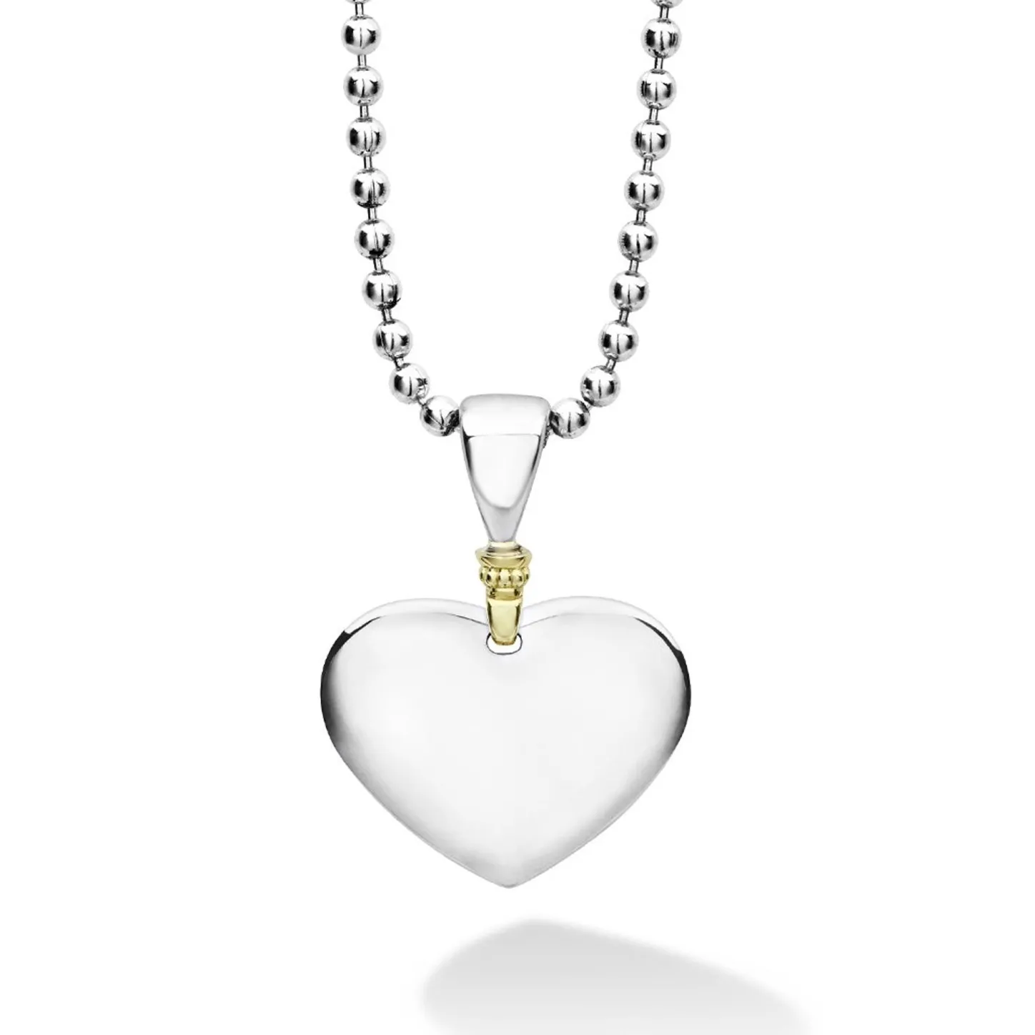 A Lagos Exclusive. Highly Polished Sterling Silver Heart Necklace With 18K Gold Beading. Ideal For A Modern Initial Or Classic Monogram.