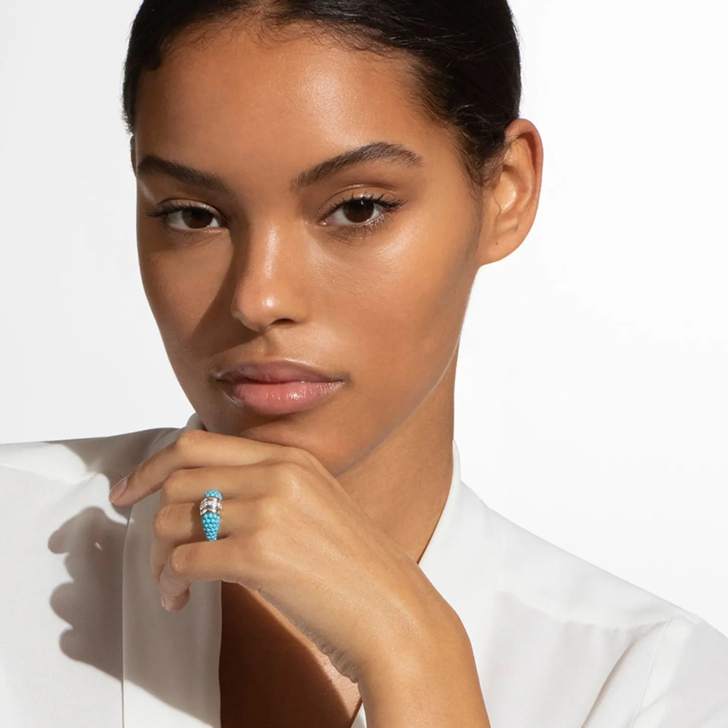 Blue Ceramic Ring With Diamonds And Highly Polished Sterling Silver. Lagos Diamonds Are The Highest Quality Natural Stones.