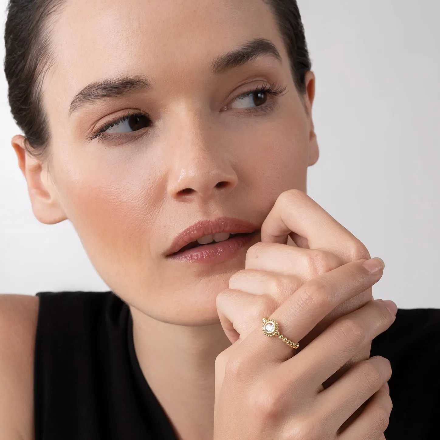 Rose Cut Diamond Stacking Ring Set And Surrounded By 18K Gold Caviar Beading. Lagos Diamonds Are The Highest Quality Natural Stones.