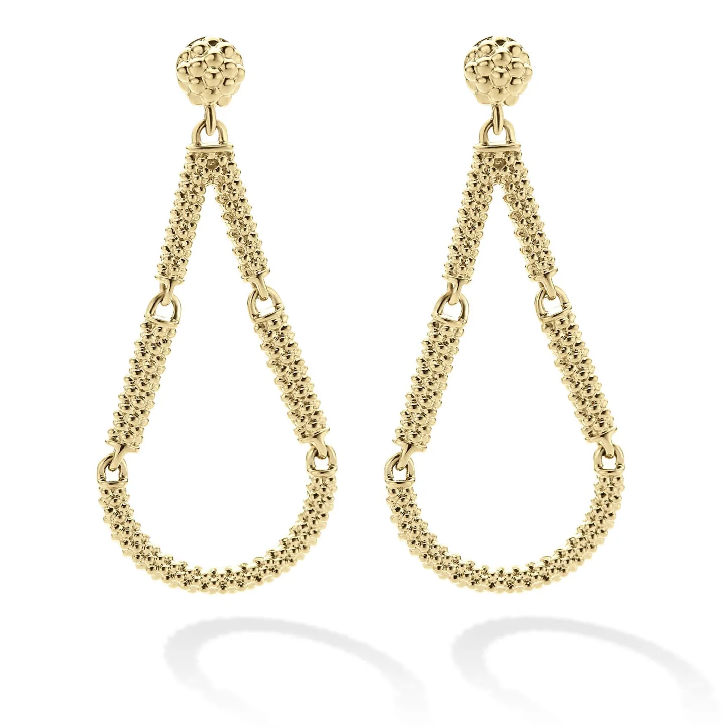 18K Gold Superfine Caviar Beaded Tear Drop Stud Earrings.