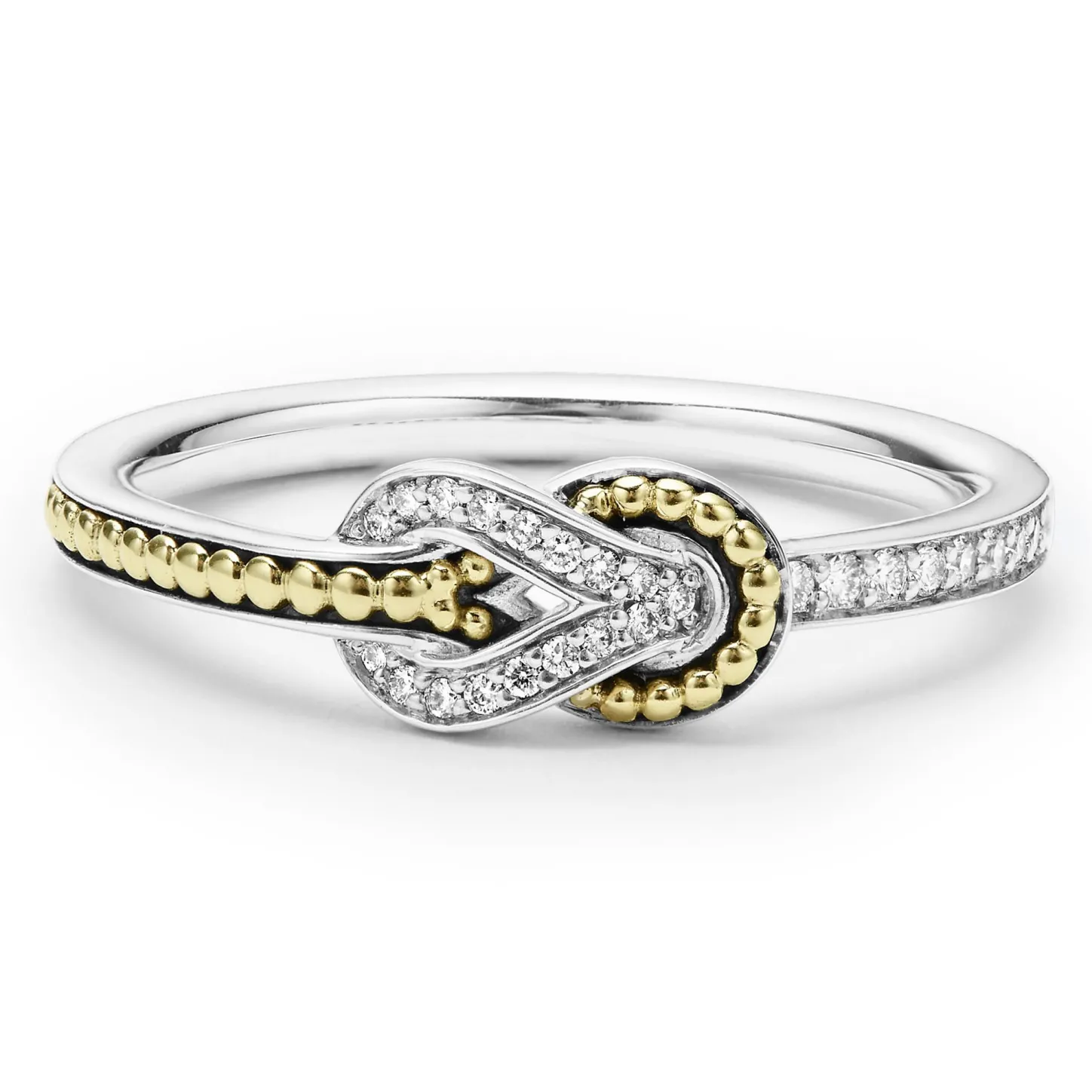 Diamonds And 18K Gold Woven In A Knot Motif Form This Unique Petite Newport Ring. Lagos Diamonds Are The Highest Quality Natural Stones.