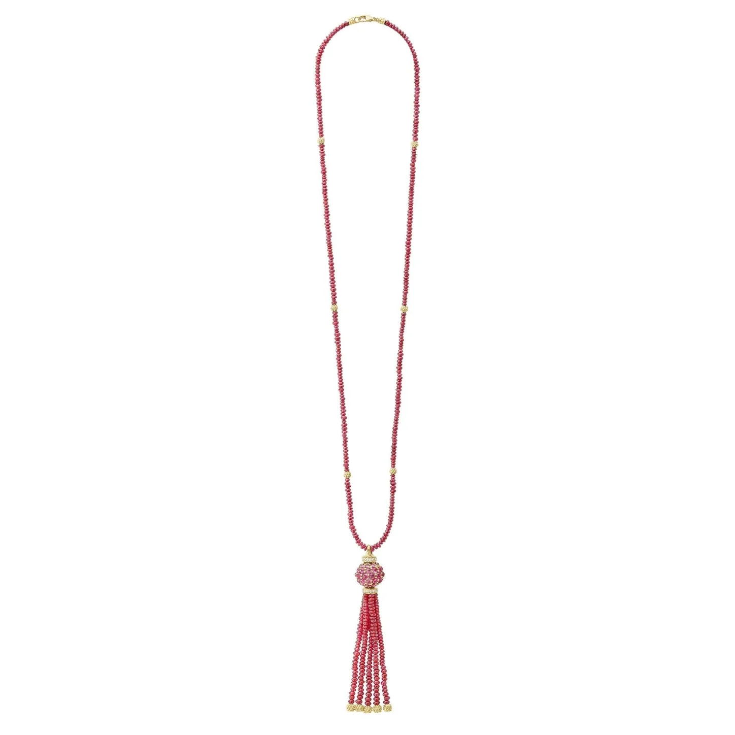 A Lagos Exclusive. A Ruby Gemstone Necklace And Ruby Gemstone Tassel Pendant With 18K Gold Caviar Beading Form This Pendant Necklace.