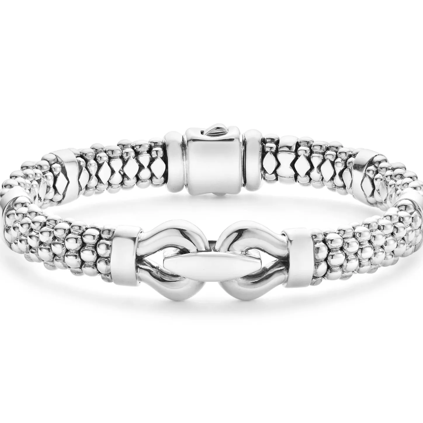 A Sterling Silver Buckle Design Accents Caviar Beading To Form This Signature Bracelet.