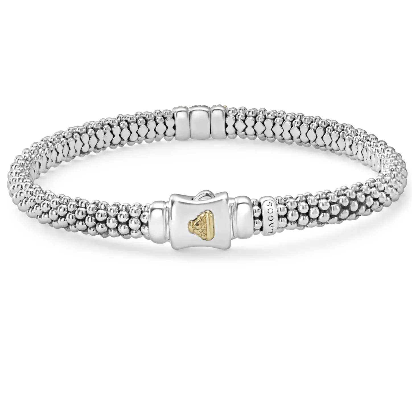 Diamonds Highlighted By 18K Gold With Sterling Silver Caviar Beading. Lagos Diamonds Are The Highest Quality Natural Stones.