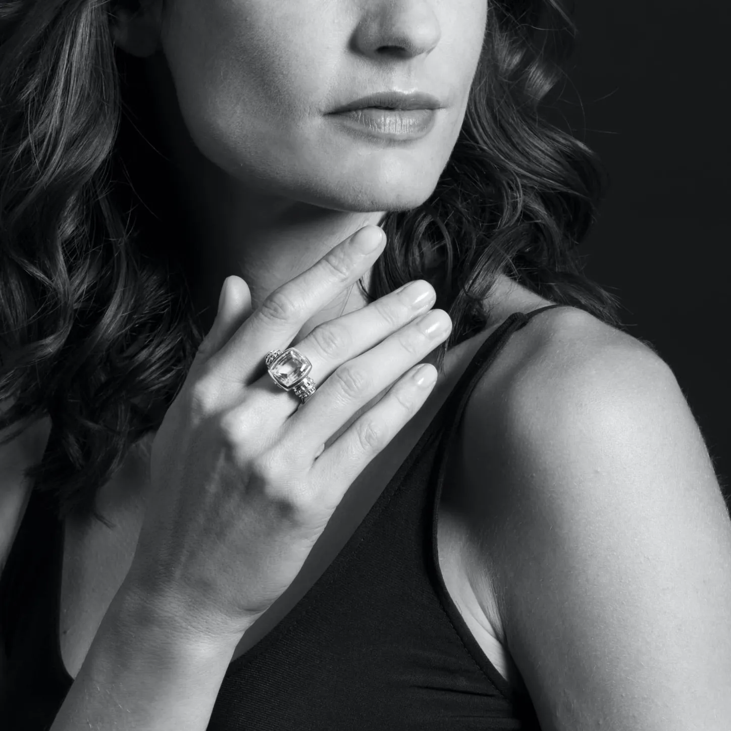 Swiss Blue Topaz Bezel-Set Gemstone Ring With 18K Gold Caviar Beading On A Sterling Silver Band.