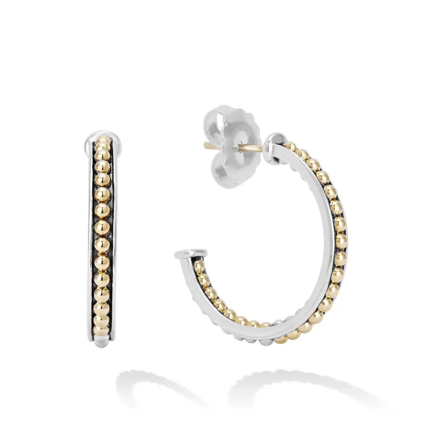 18K Gold Caviar Beading And Sterling Silver Form These Signature Lagos Hoop Earrings.