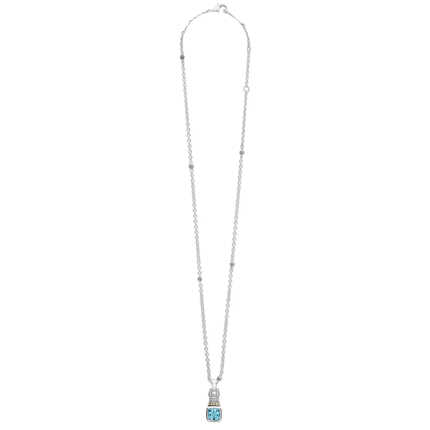 Swiss Blue Topaz Gemstone Drop Pendant Necklace With 18K Gold And Sterling Caviar Beading. Necklace Adjusts From 16 To 18 Inches For Added Versatility.