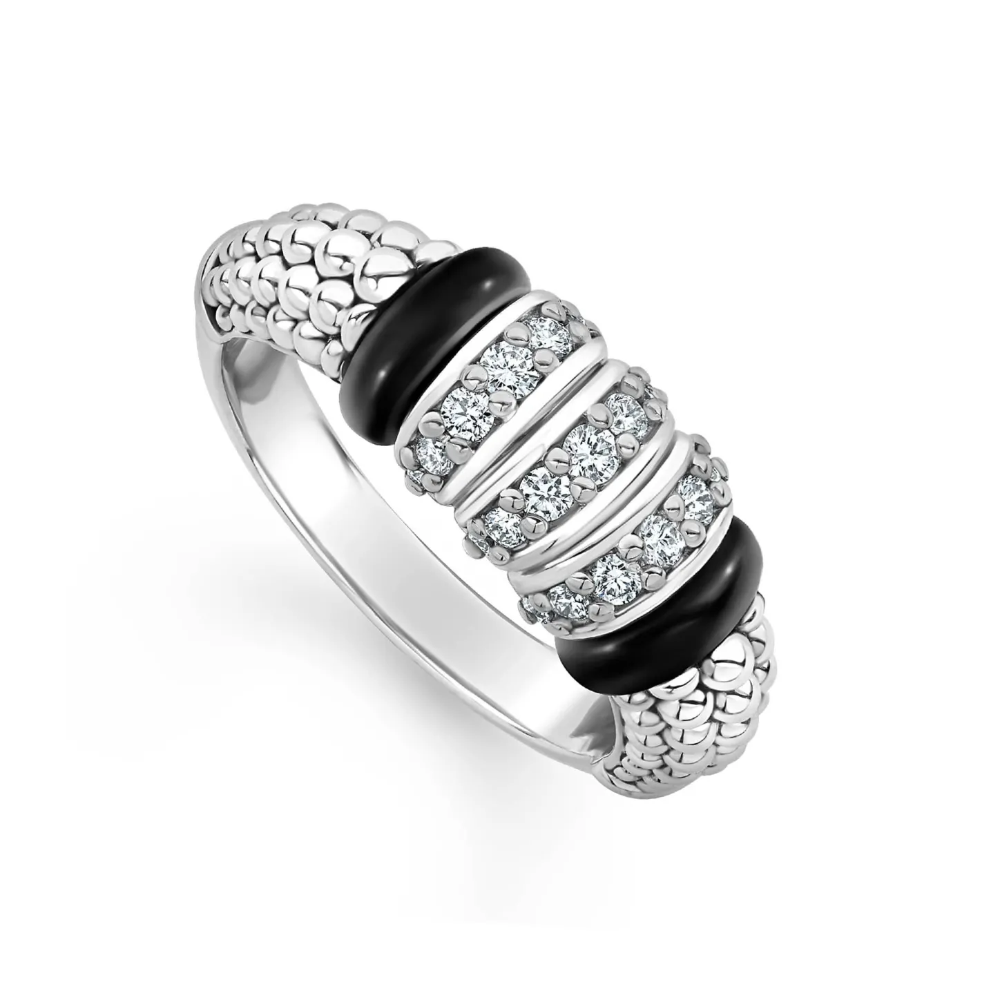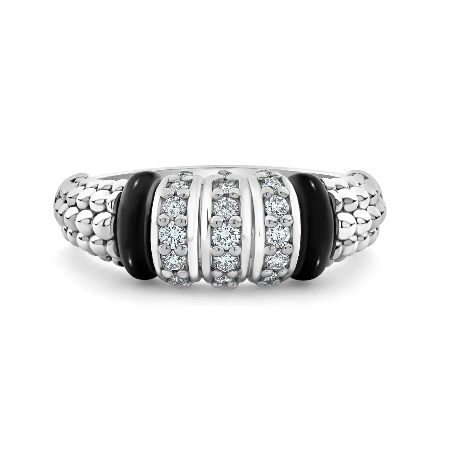 Cheap Three Station Diamond Ceramic Caviar Ring Silver