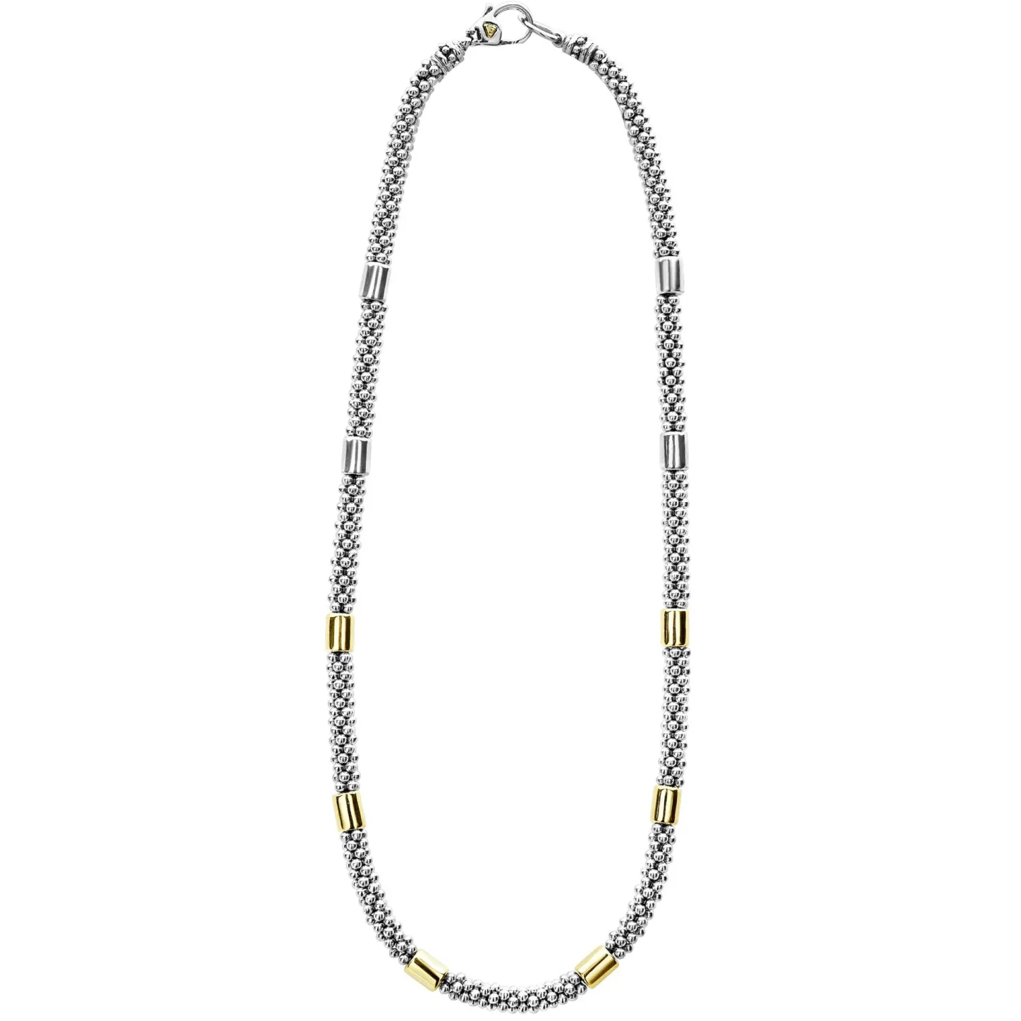 Ten Smooth Stations Of 18K Gold And Sterling Silver Surrounded By Caviar Beading.