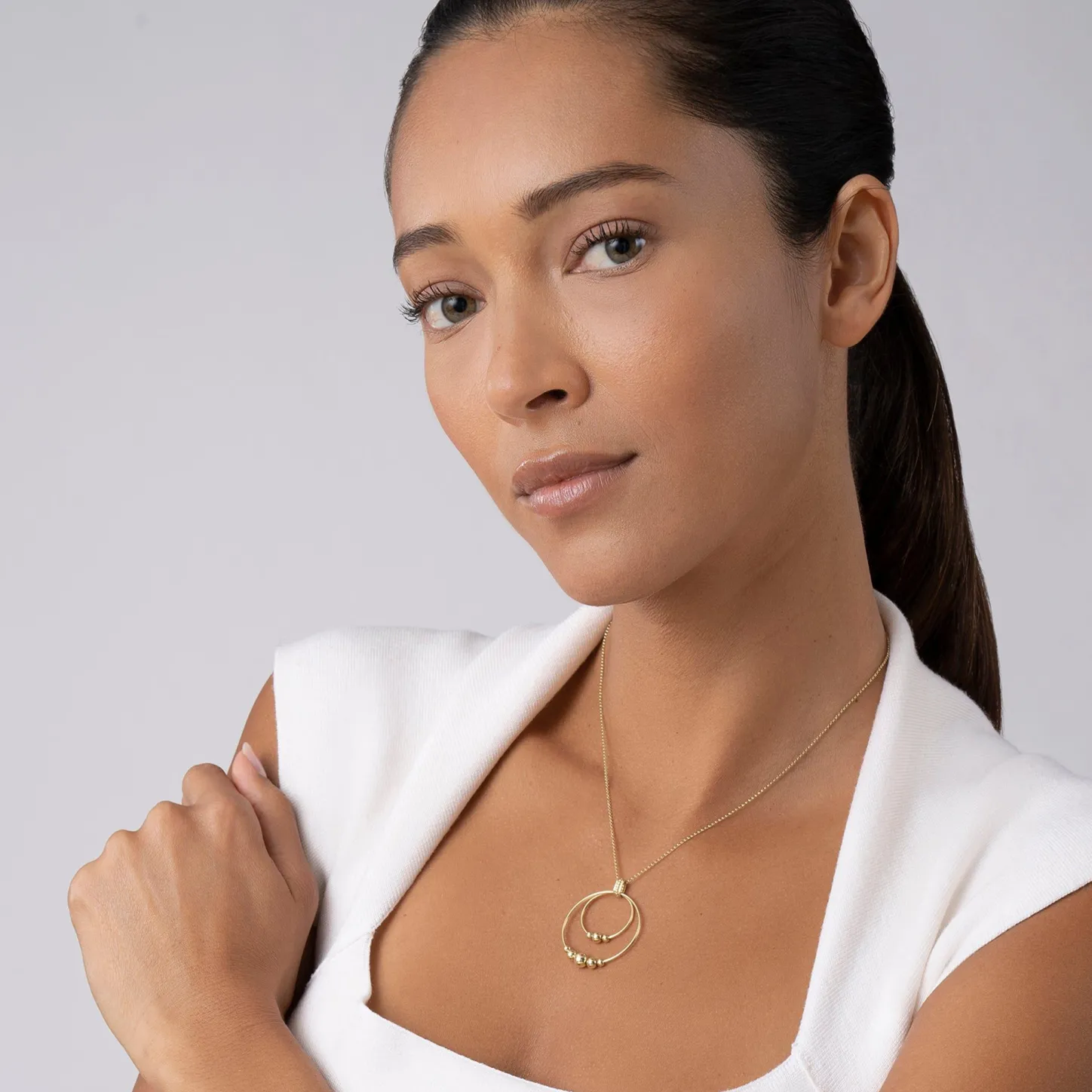 Two 18K Gold Circles With Graduated Beaded Accents Form This Pendant Finished On A Chain Necklace.