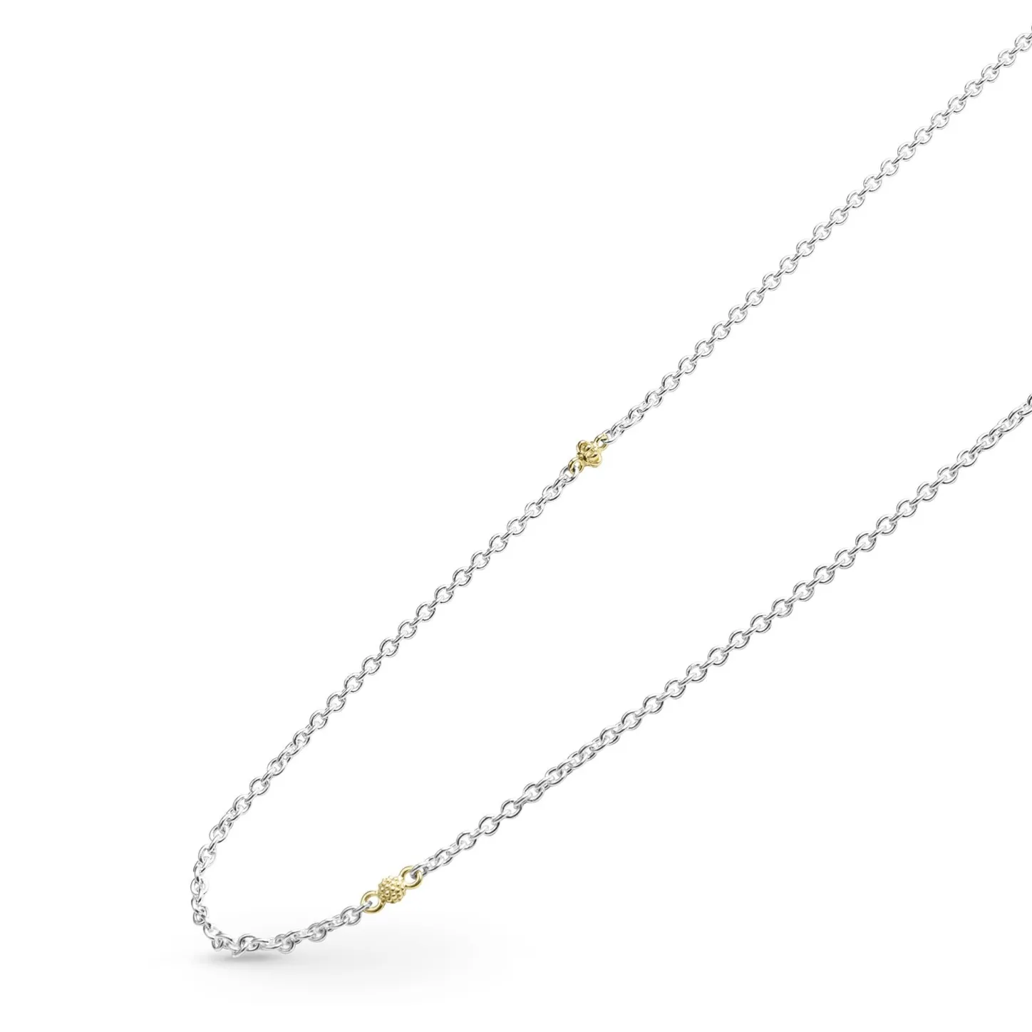 Sterling Silver Necklace With 18K Gold Caviar Beading And Fluted Accents. Ideal To Style With Various Necklaces For A Unique Look.