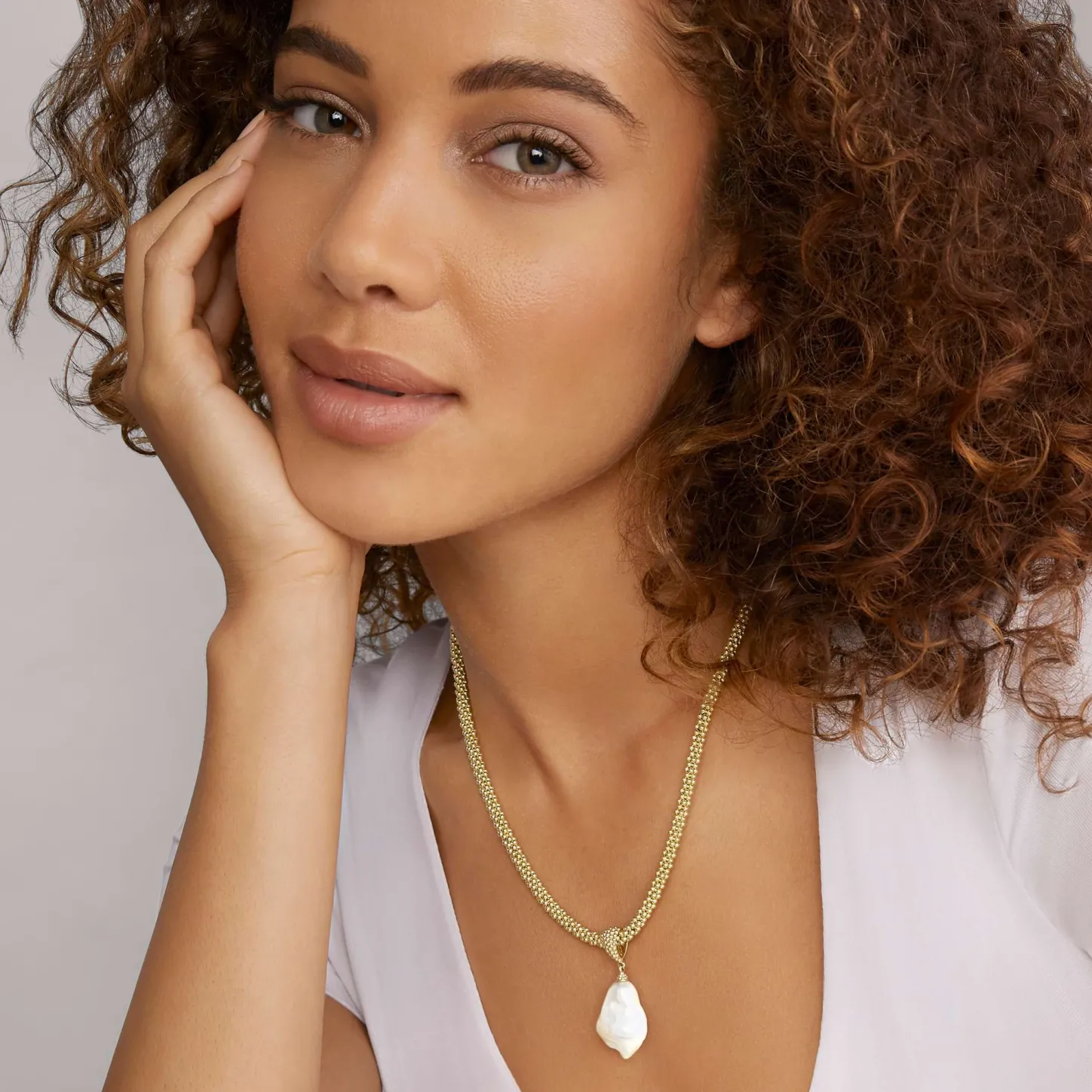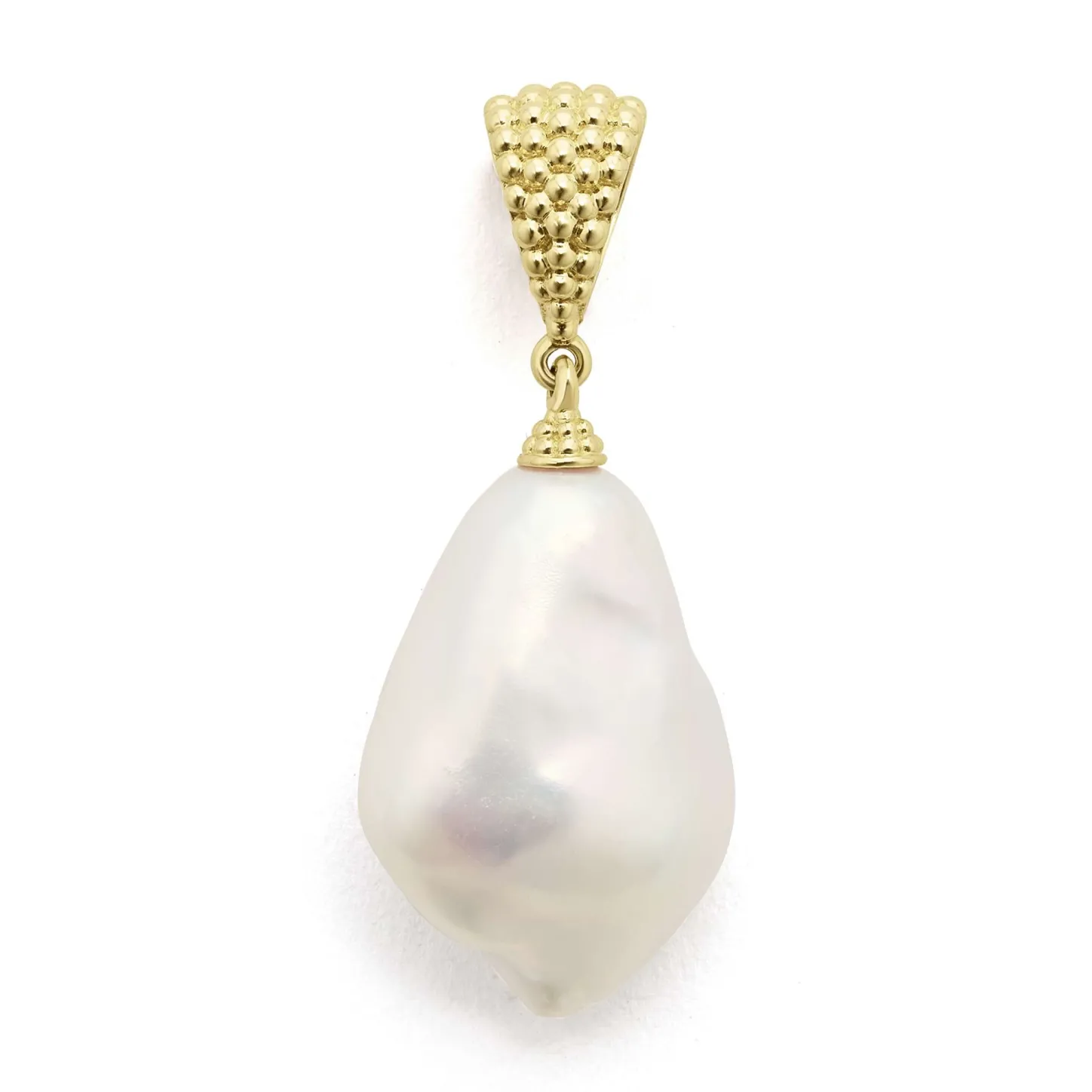 18K Gold Caviar Beading Frame This Timeless Cultured Freshwater Pearl Baroque Pendant.