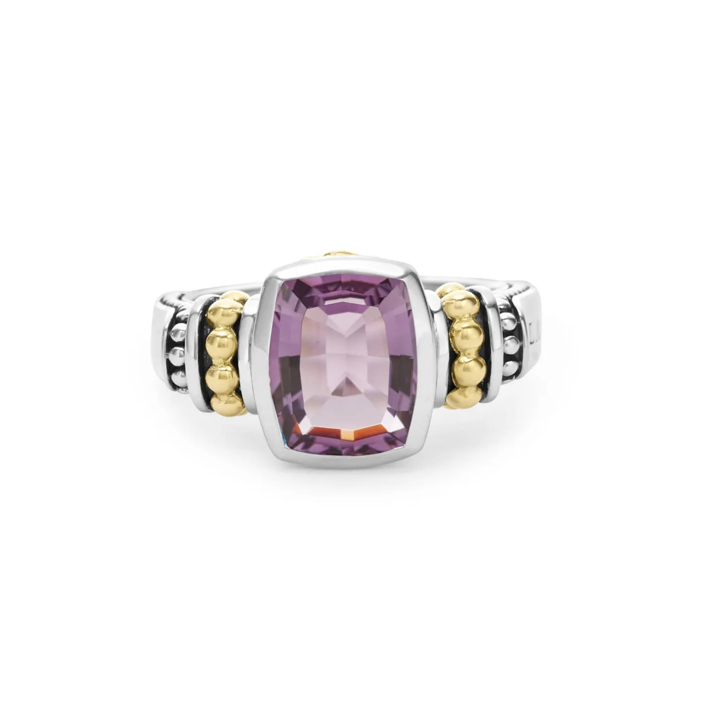 Amethyst Bezel-Set Gemstone Ring With 18K Caviar Beading On A Sterling Silver Band.