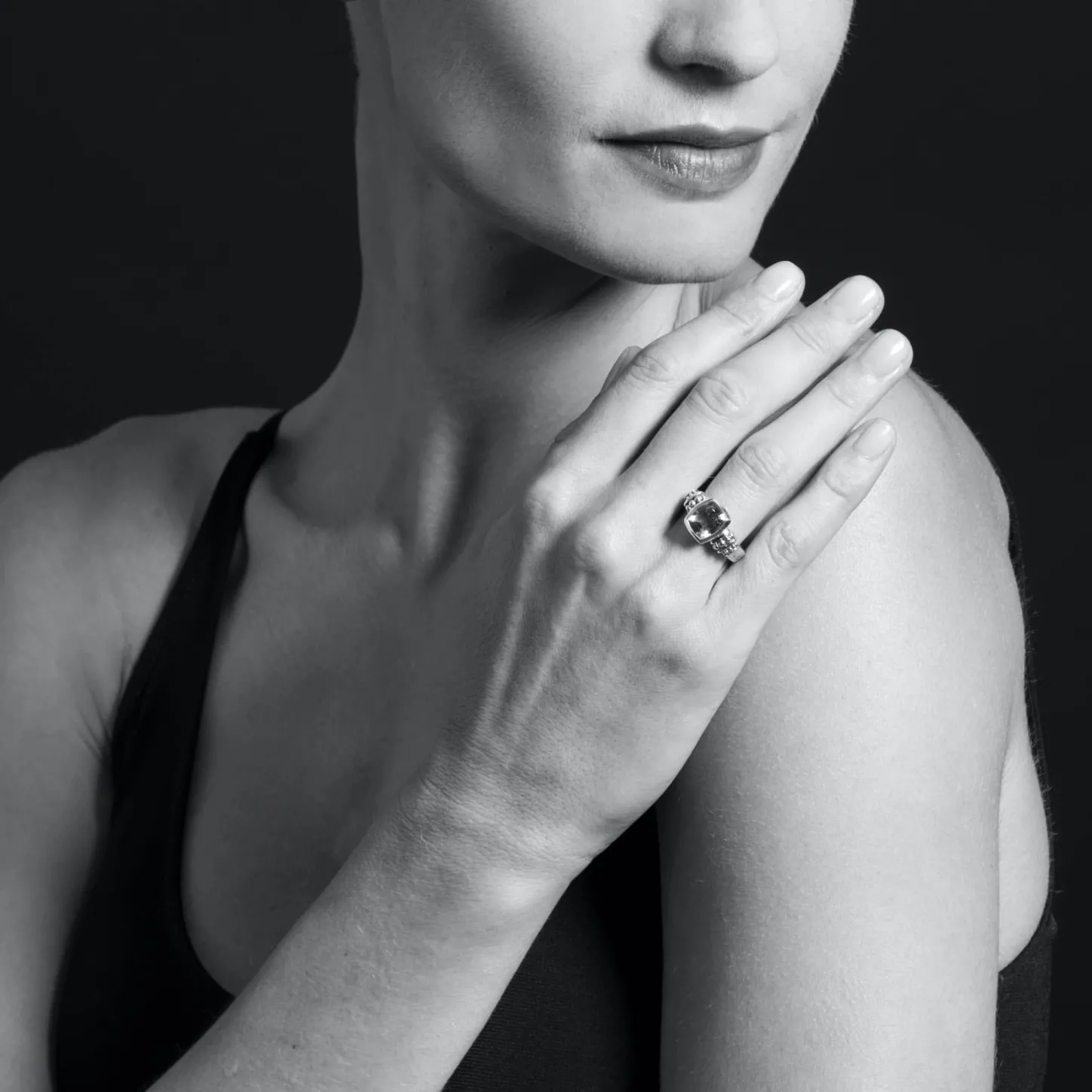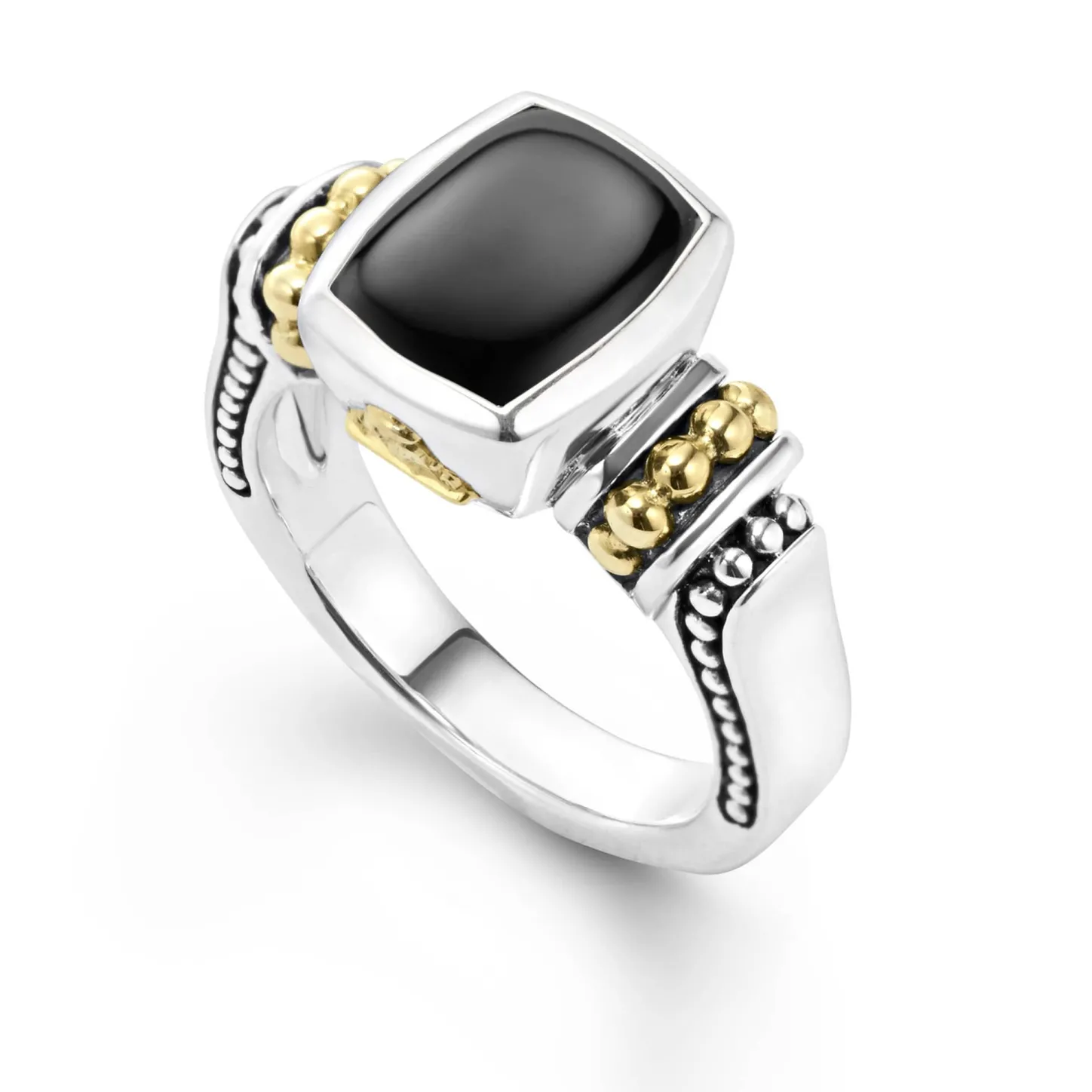 Onyx Bezel-Set Gemstone Ring With 18K Caviar Beading On A Sterling Silver Band.