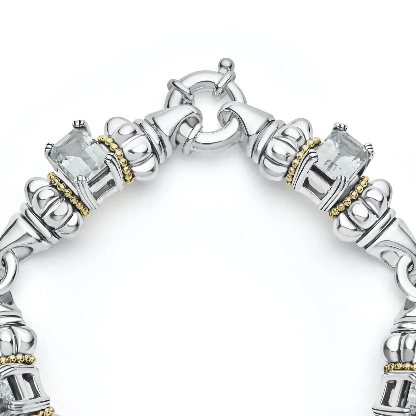 Five White Topaz Emerald-Cut Gemstones, With 18K Gold And Sterling Silver Detailing Form This Bracelet.