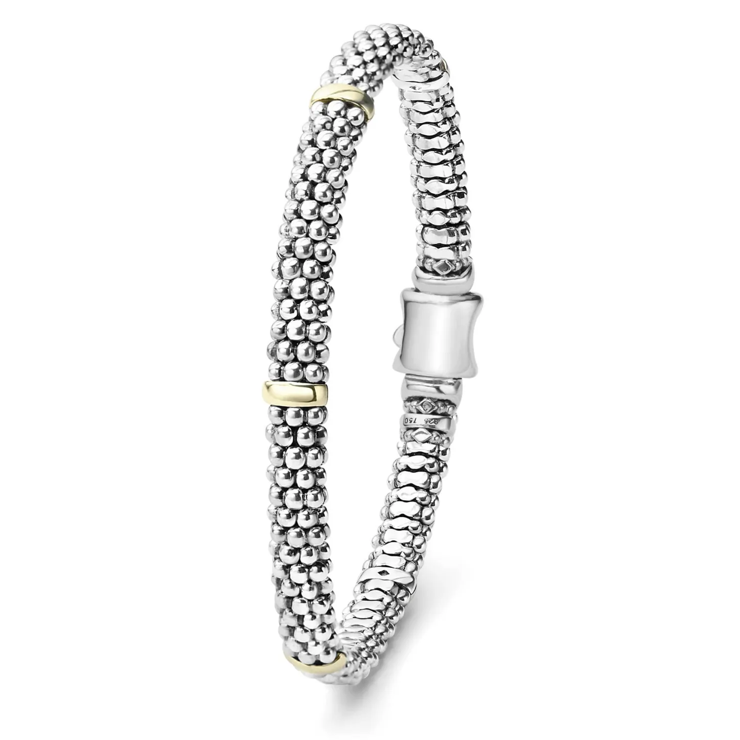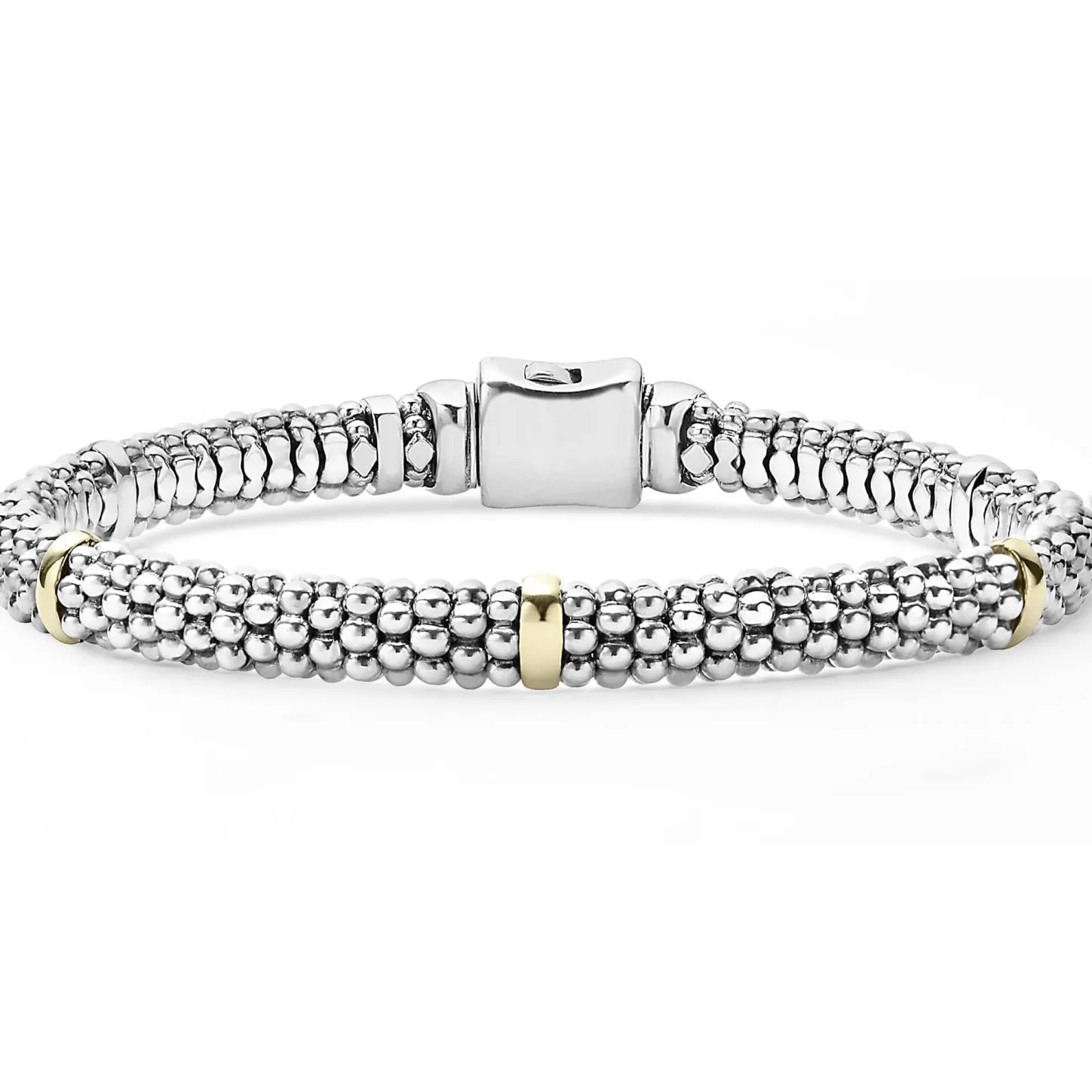 Five 18K Gold Stations With Sterling Silver Caviar Beading Form This Signature Bracelet.