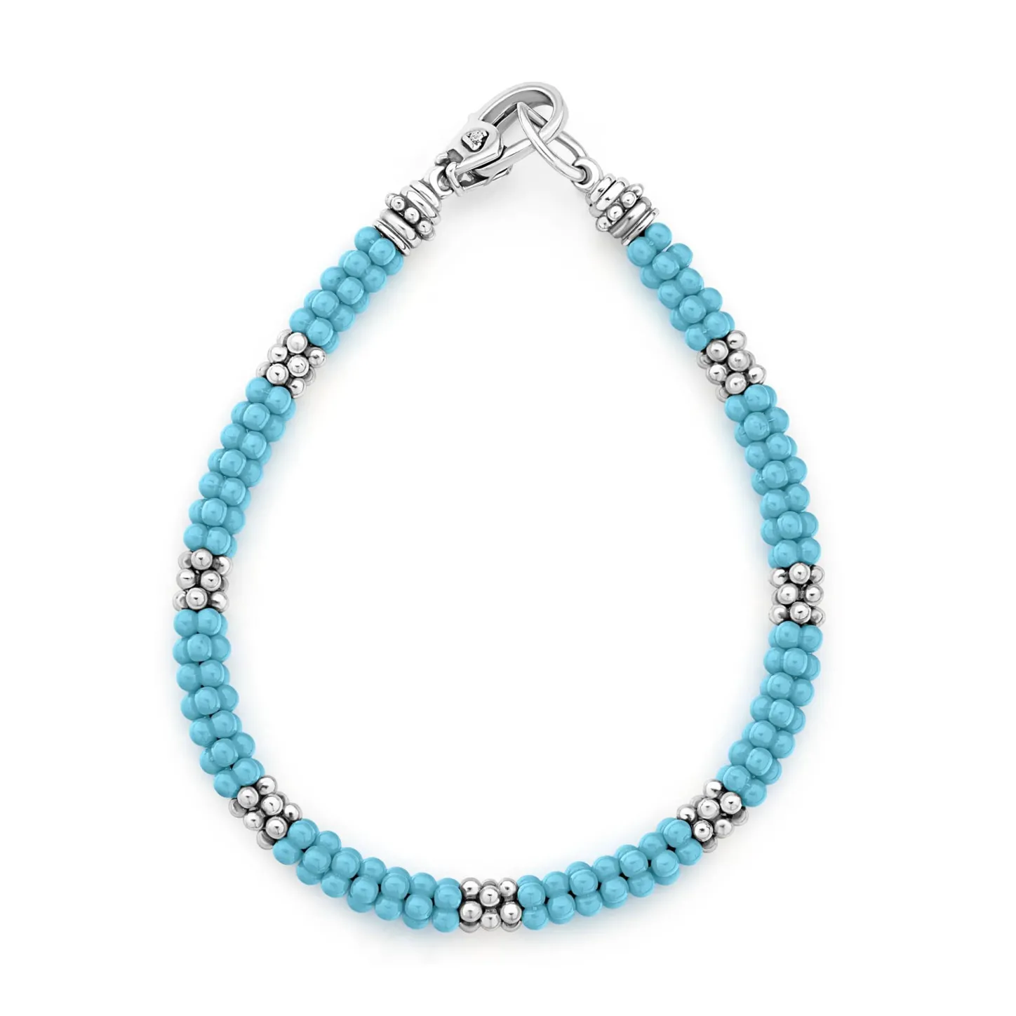 A Blue Ceramic Caviar Bracelet Accented By Seven Sterling Silver Stations.
