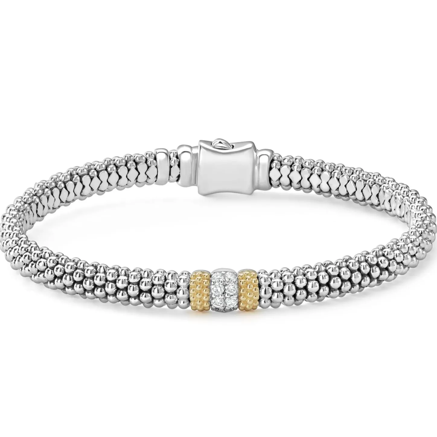 Diamonds Highlighted By 18K Gold With Sterling Silver Caviar Beading. Lagos Diamonds Are The Highest Quality Natural Stones.