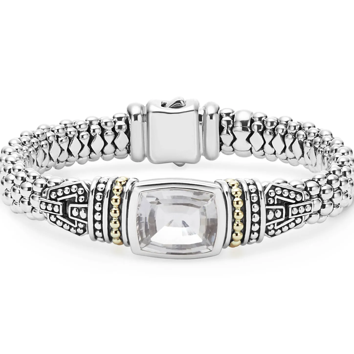 White Topaz Bezel-Set Gemstone And Sterling Silver Caviar Beading With 18K Gold Detailing Forms This Bracelet.