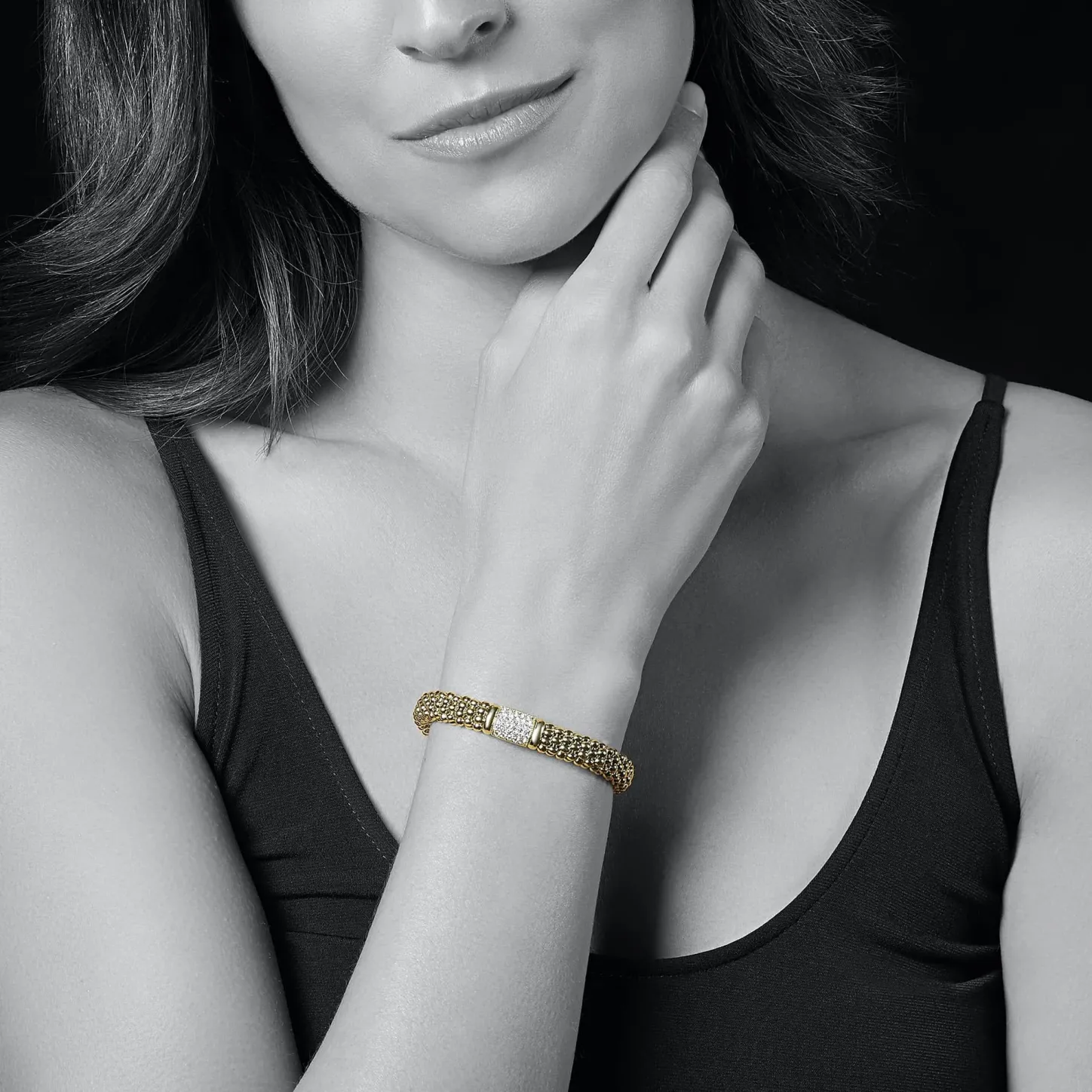 Pavé Diamonds Surrounded By 18K Gold Caviar Beading Form This Lasting Bracelet. Lagos Diamonds Are The Highest Quality Natural Stones.