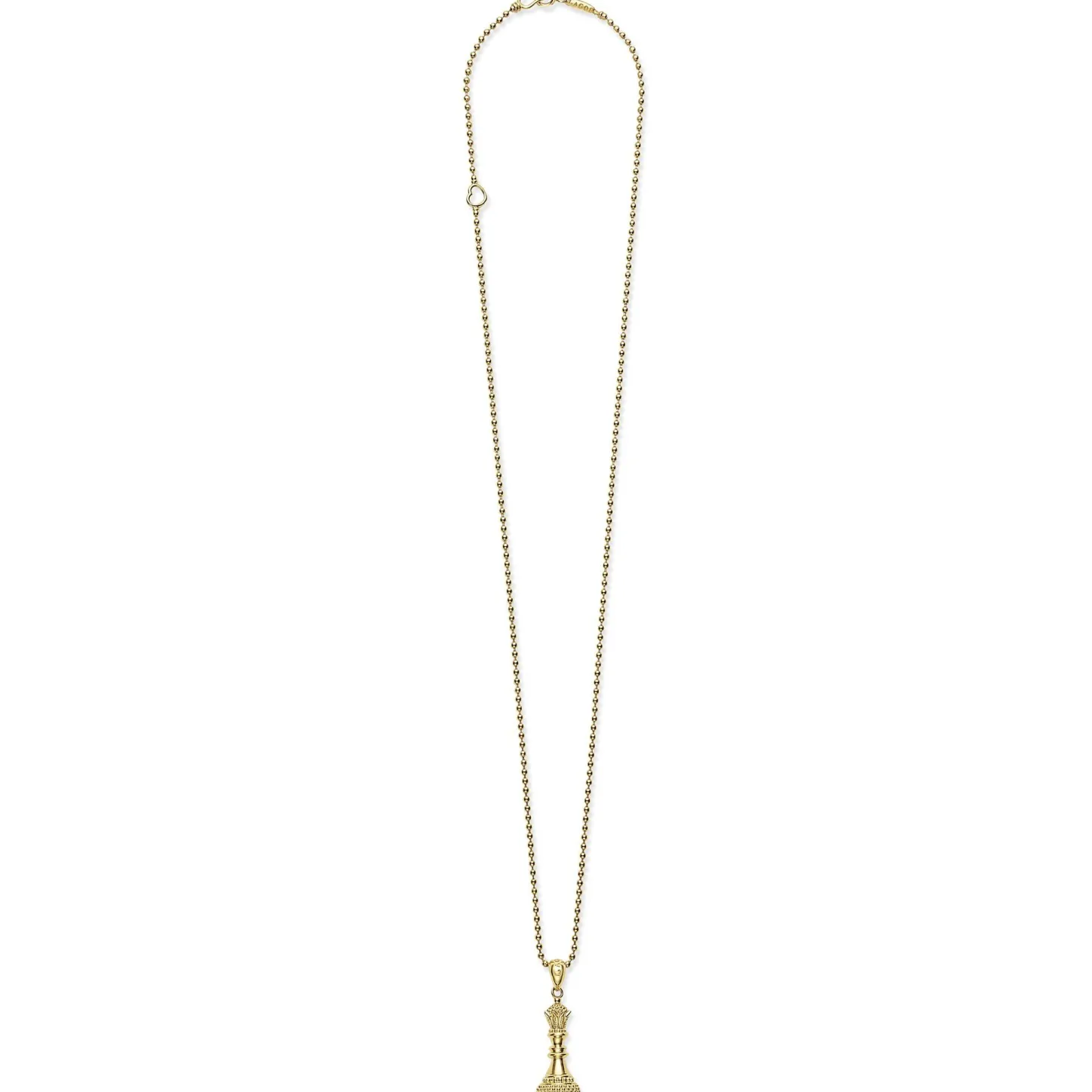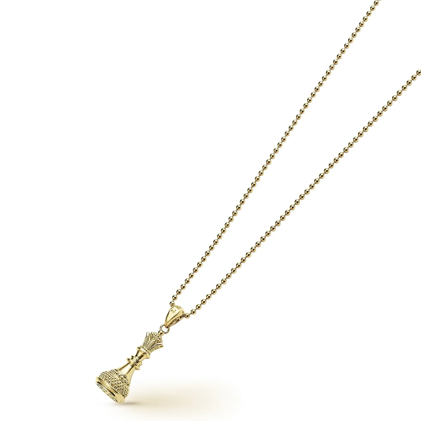 A Lagos Exclusive. Uniquely Crafted 18K Gold Queen Chess Piece Finished On A 18 To 20 Inch Adjustable Ball Chain Necklace.