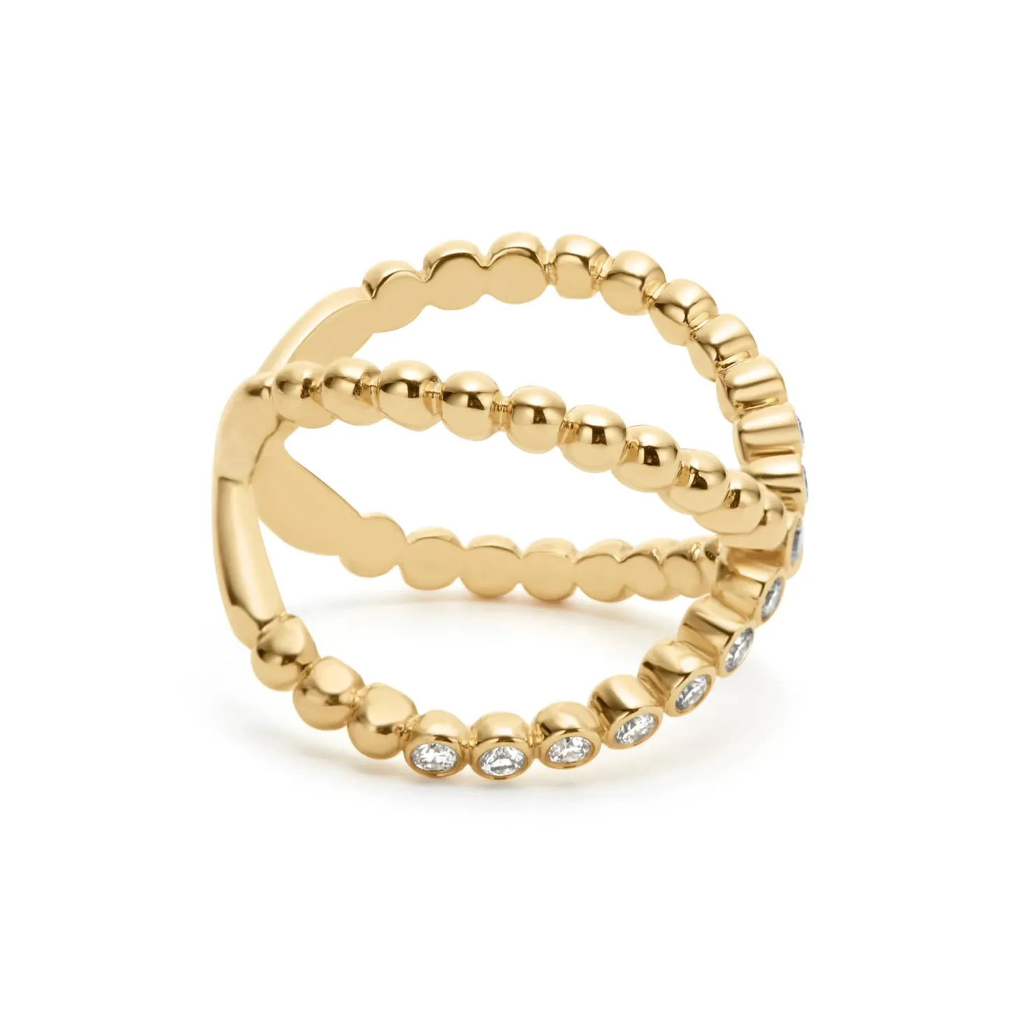 Diamonds Set By 18K Gold Beading Form This Signature X Ring. Lagos Diamonds Are The Highest Quality Natural Stones.