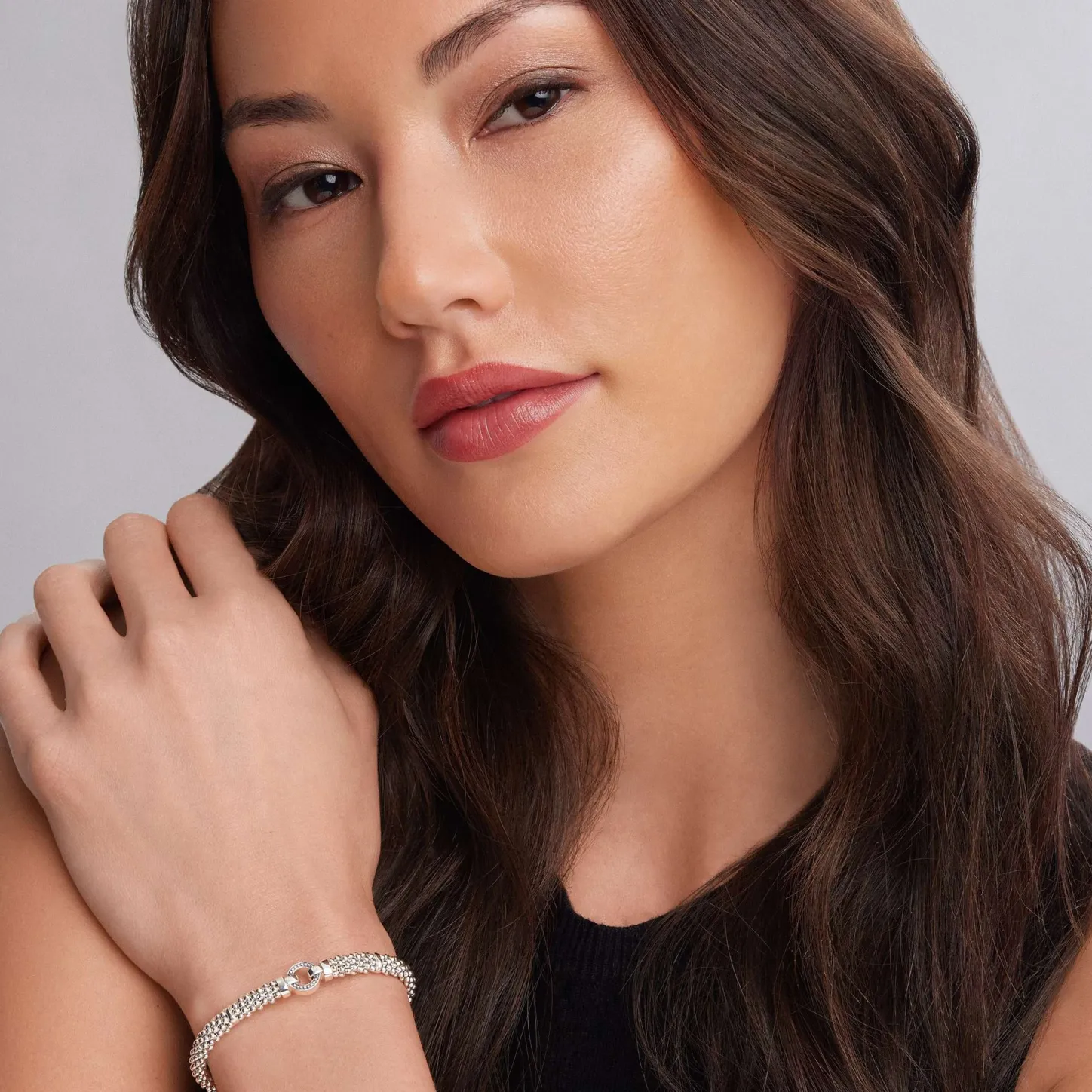 Our Best-Selling Sterling Silver Caviar Bracelet Detailing An Open Circle.
