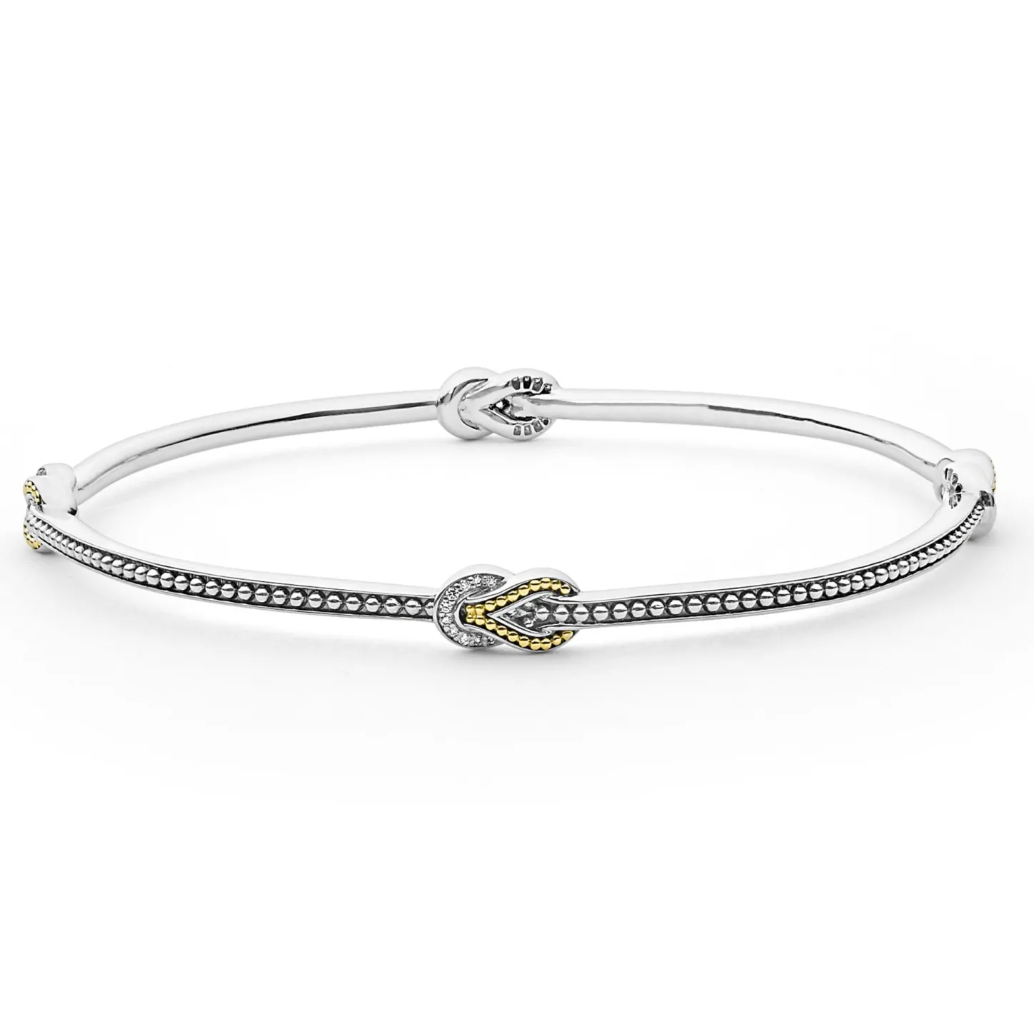 Four Diamond And 18K Gold Knot Motifs Accent This Sterling Silver Caviar Beaded Bangle Bracelet. Lagos Diamonds Are The Highest Quality Natural Stones.