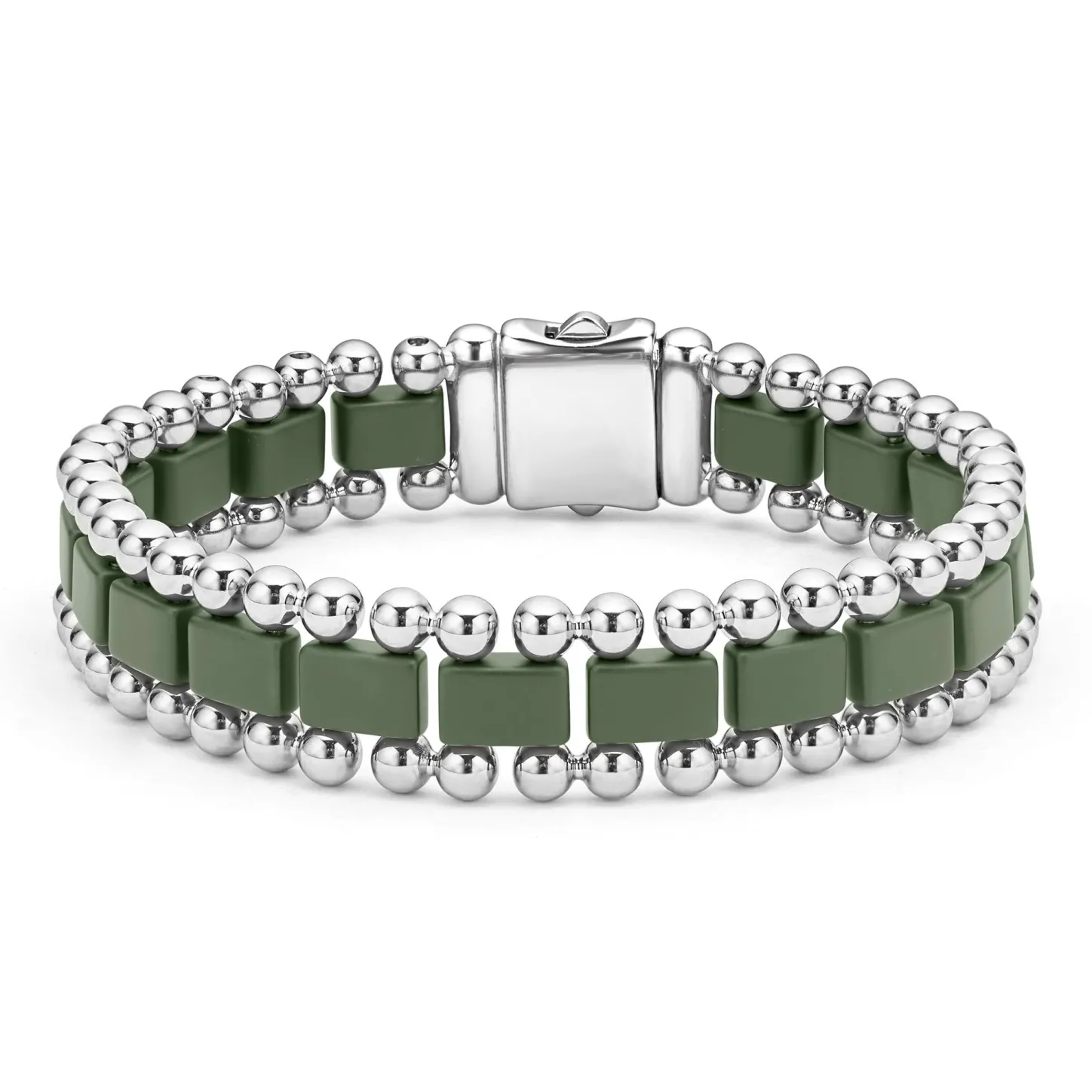 Matte Hunter Green Ceramic And Stainless Steel Form This Caviar Beaded Link Bracelet. Perfect For Everyday Wear.