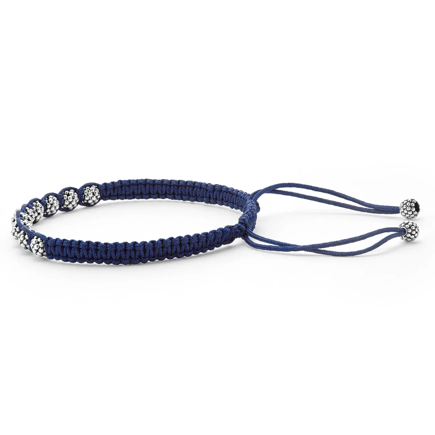 Navy Blue Braided Nylon With Sterling Silver Caviar Beading Forms This Versatile Macrame Bracelet.