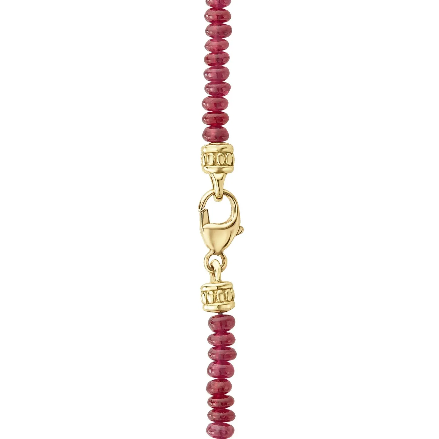 A Lagos Exclusive. A Ruby Gemstone Necklace And Ruby Gemstone Tassel Pendant With 18K Gold Caviar Beading Form This Pendant Necklace.