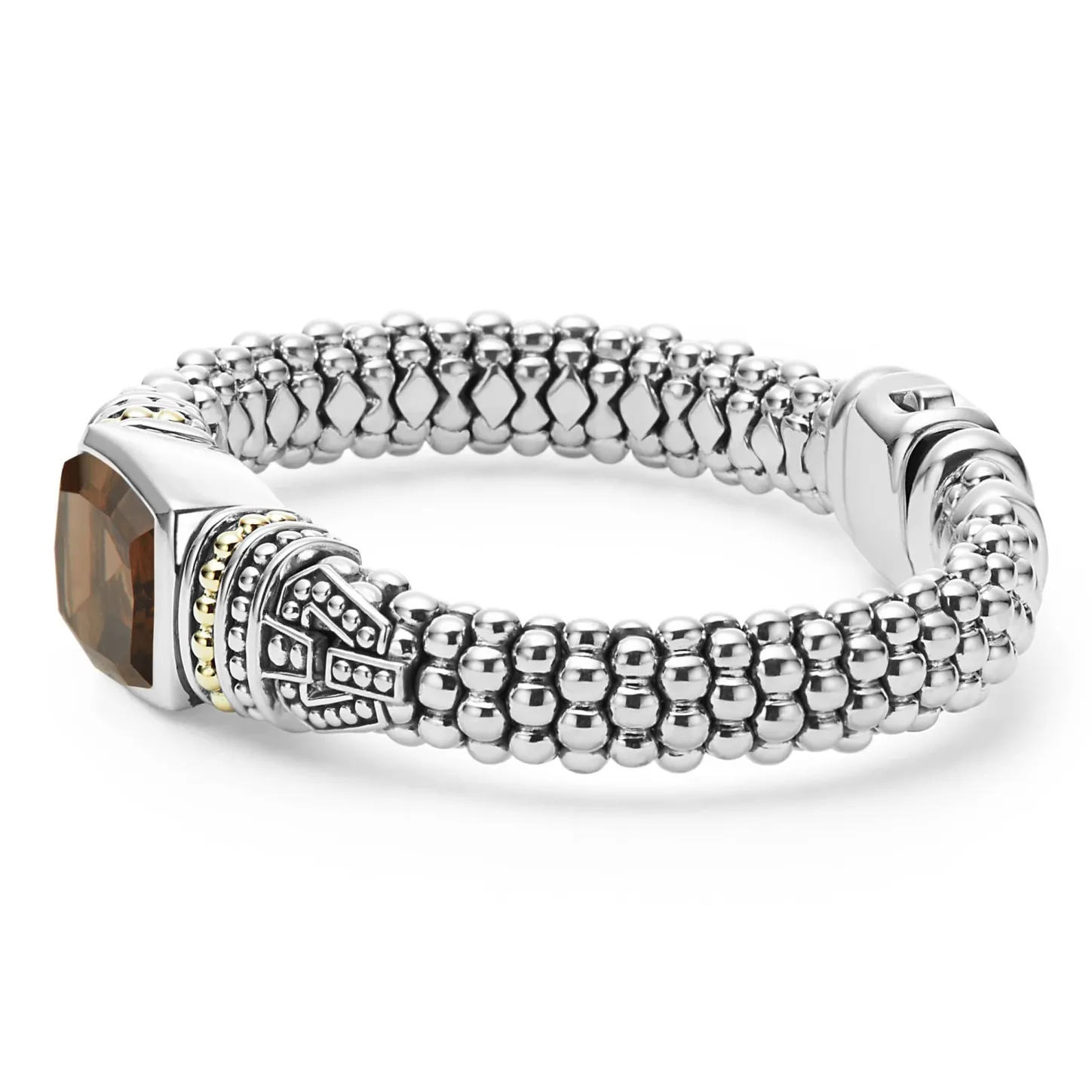 Smokey Quartz Bezel-Set Gemstone And Sterling Silver Caviar Beading With 18K Gold Detailing Forms This Bracelet.