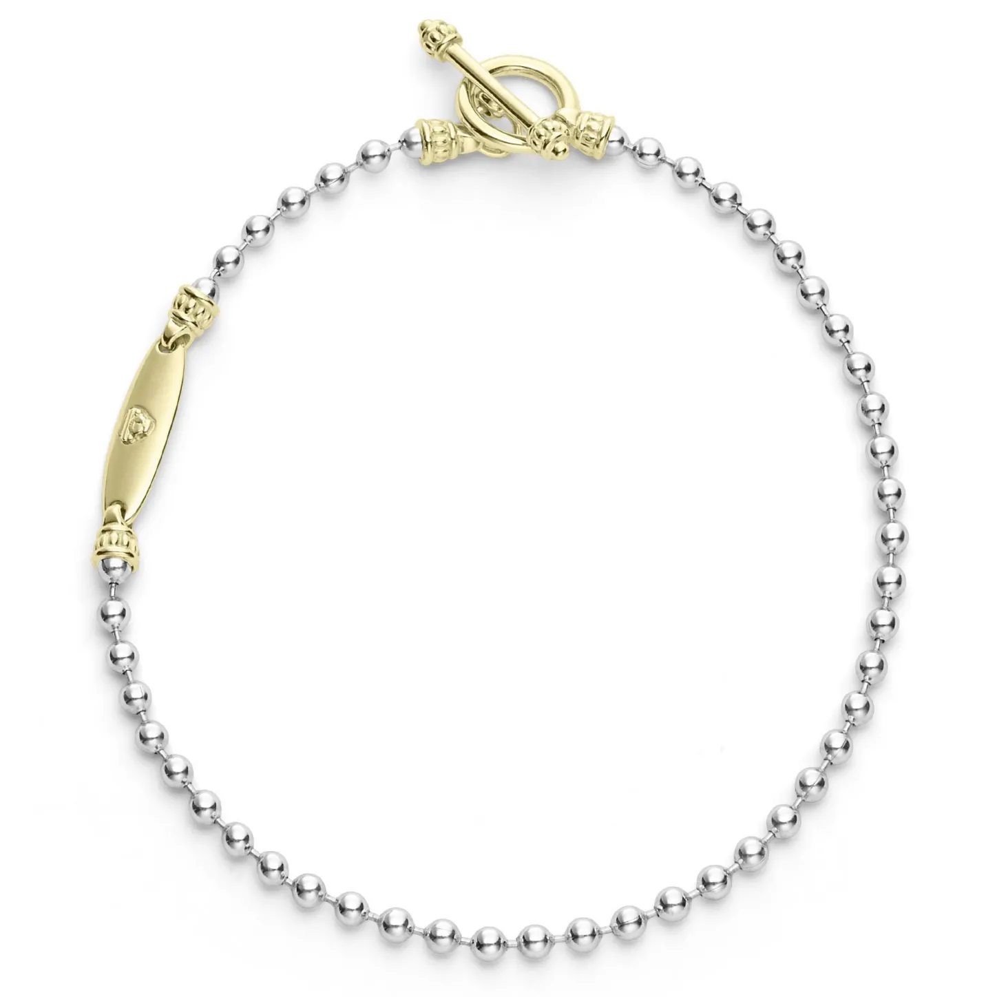 18K Gold And Sterling Silver Ball Chain Bracelet Finished With A Toggle Clasp.