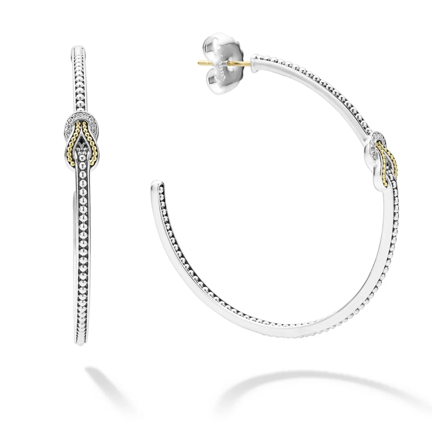 Diamonds And 18K Gold Woven In A Knot Motif Form These Unique Newport Caviar Beaded Hoop Earrings. Lagos Diamonds Are The Highest Quality Natural Stones.