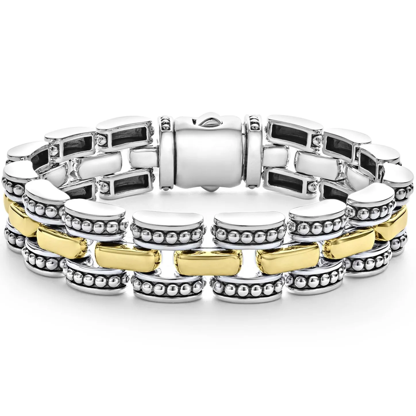 - One 18K Gold And Sterling Silver Caviar Beaded Link Bracelet. Set Includes Size Medium.