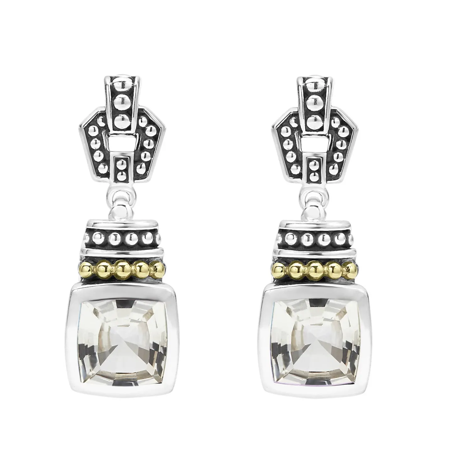 White Topaz Bezel-Set Gemstone Drop Earrings With 18K Gold And Sterling Silver Caviar Accents.