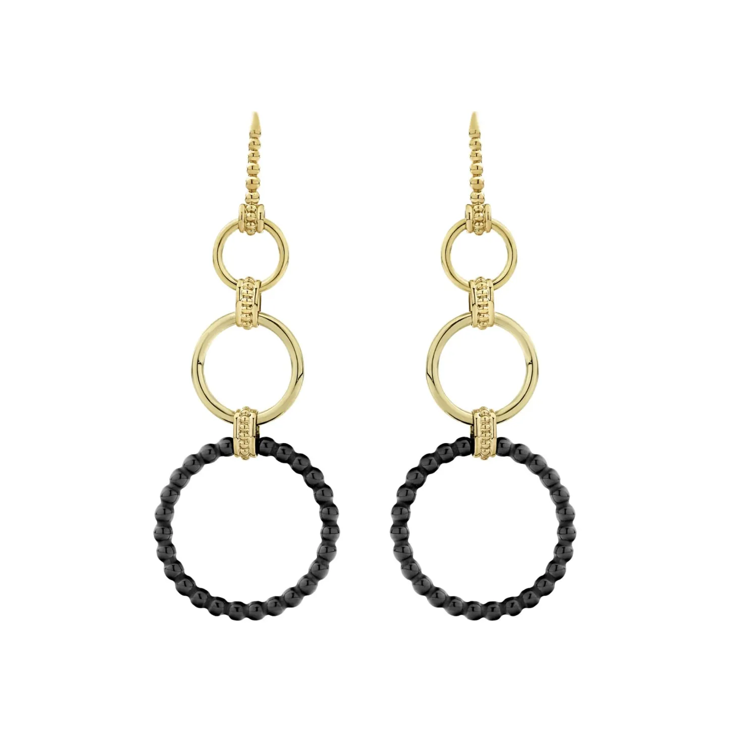 Circle Drop Earrings With Smooth 18K Gold And Black Ceramic.