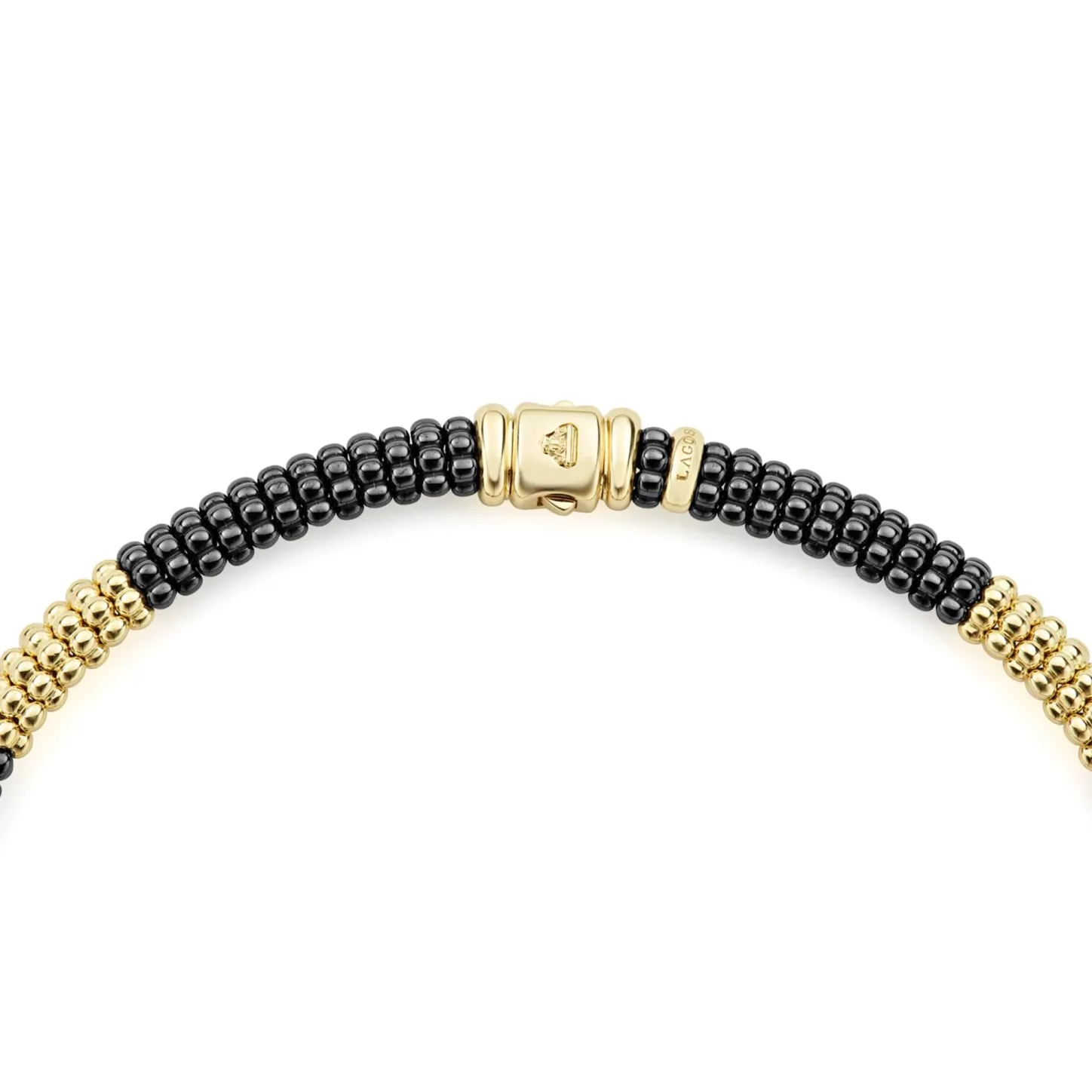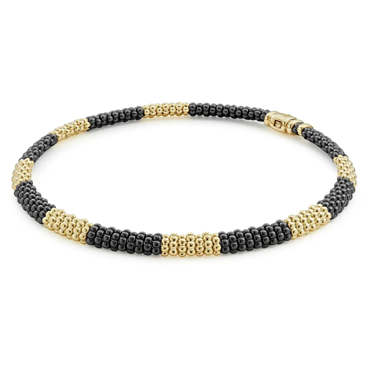 A Lagos Exclusive. Seven 18K Gold Stations Highlighted By Black Ceramic Caviar Beading On This Necklace Finished With An 18K Gold Box Clasp.