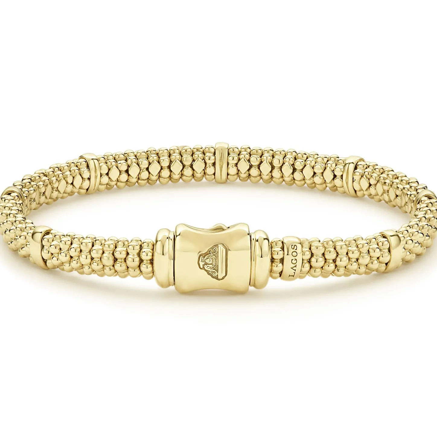 An 18K Gold Caviar Beaded Bracelet With Smooth Stations.