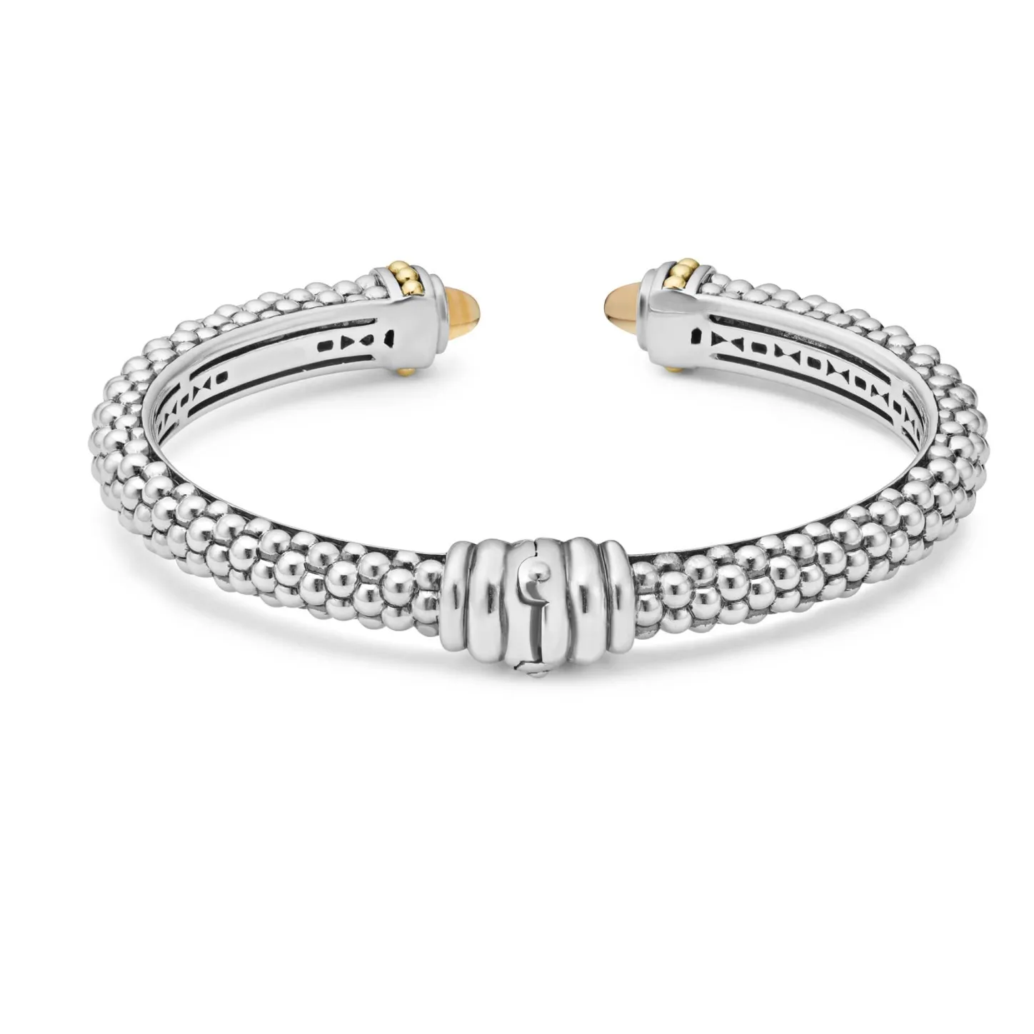 Caviar Beading And Highly Polished Sterling Silver Stations Comprise This Innovative Cuff Bracelet Detailing Citrine Gemstone End Caps.