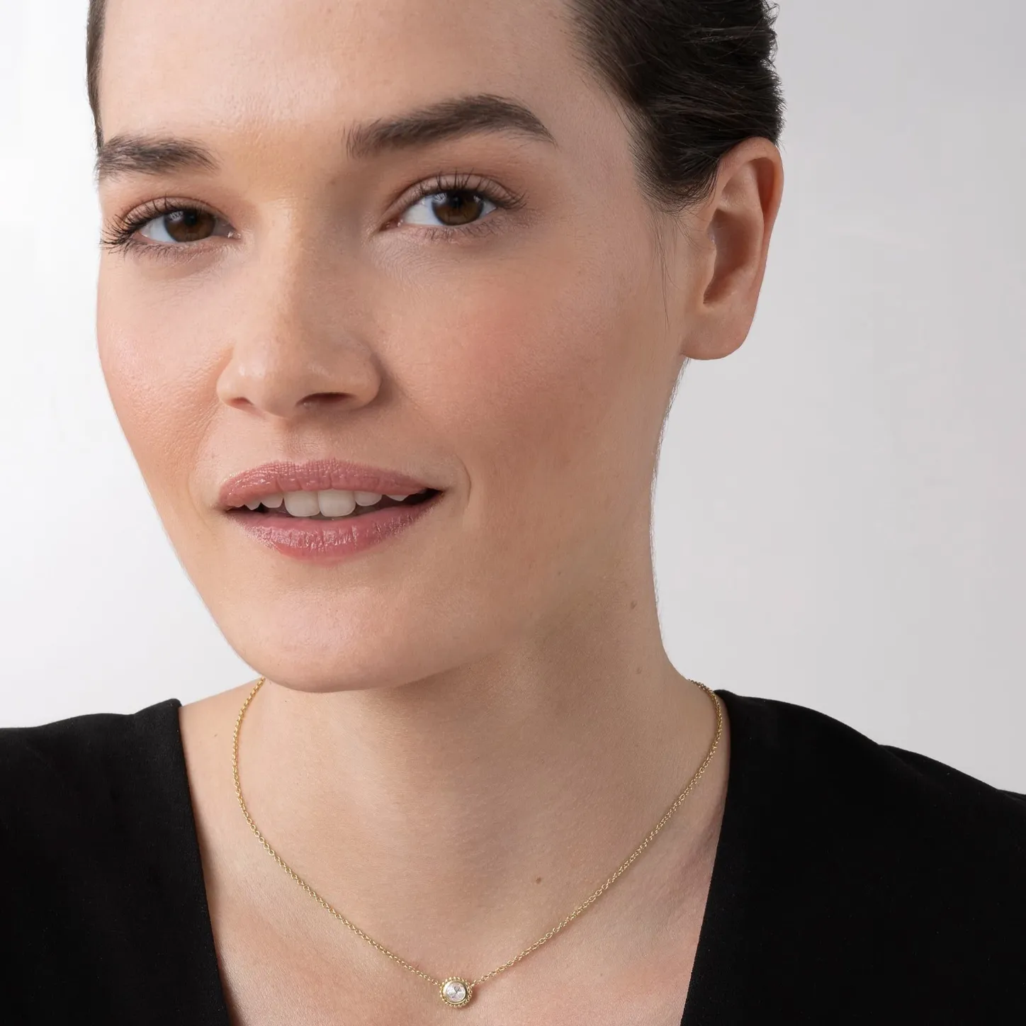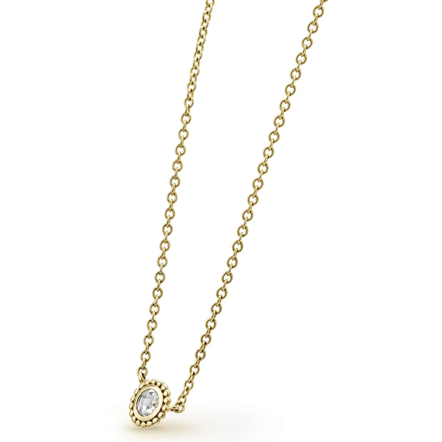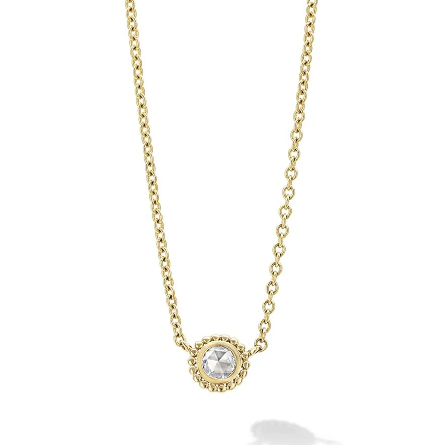 Rose Cut Diamond Pendant Necklace Set And Surrounded By 18K Gold Caviar Beading. Lagos Diamonds Are The Highest Quality Natural Stones.