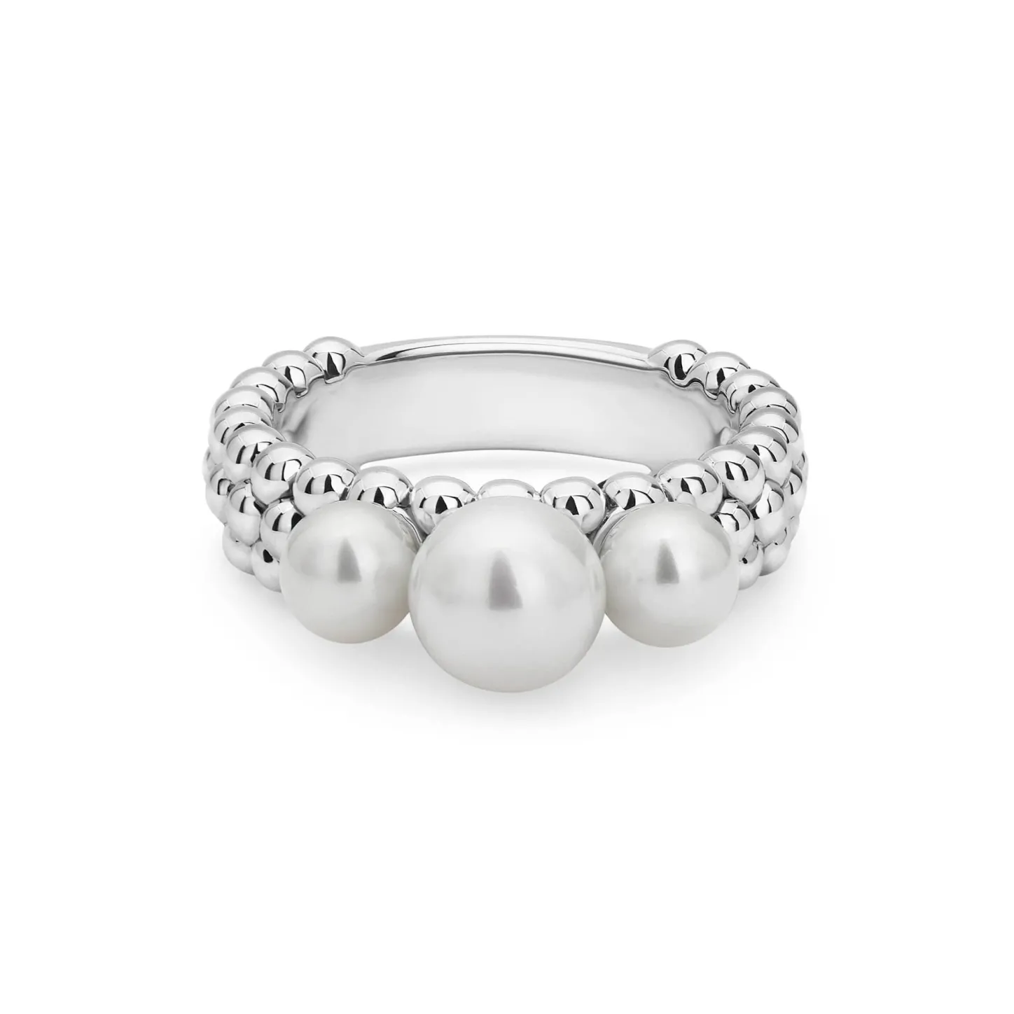 Three Cultured Freshwater Pearls Form This Statement Ring With Sterling Silver Caviar Beading.