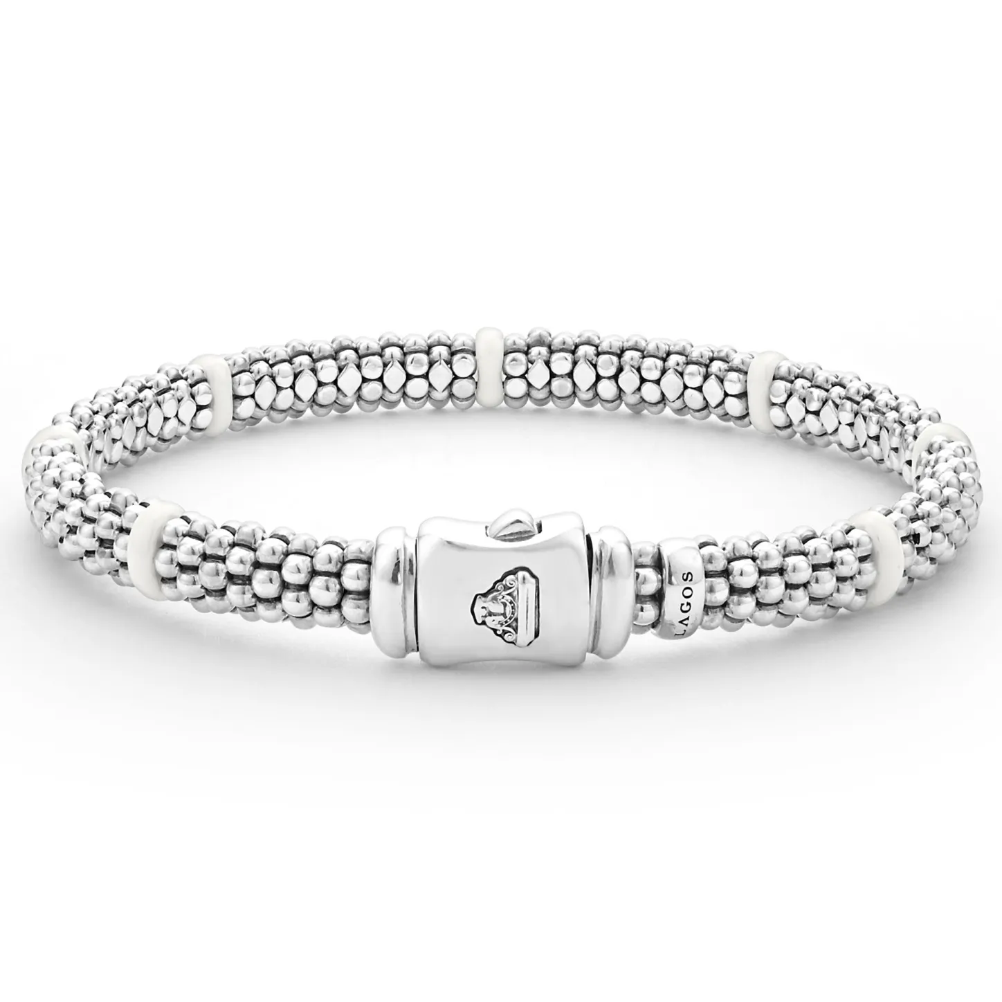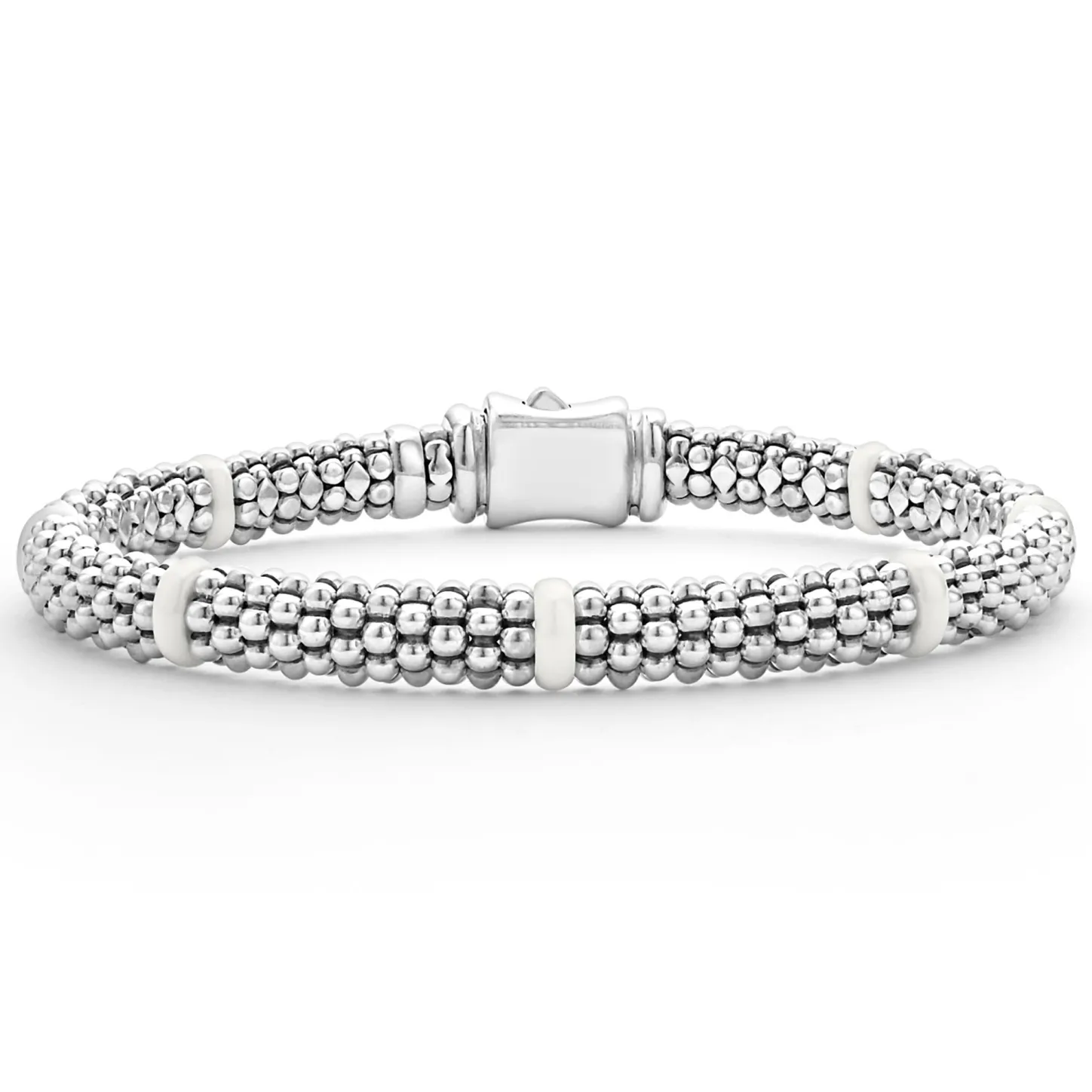 Seven Smooth White Ceramic Stations Highlight Sterling Silver Caviar Beading On This Signature Bracelet.