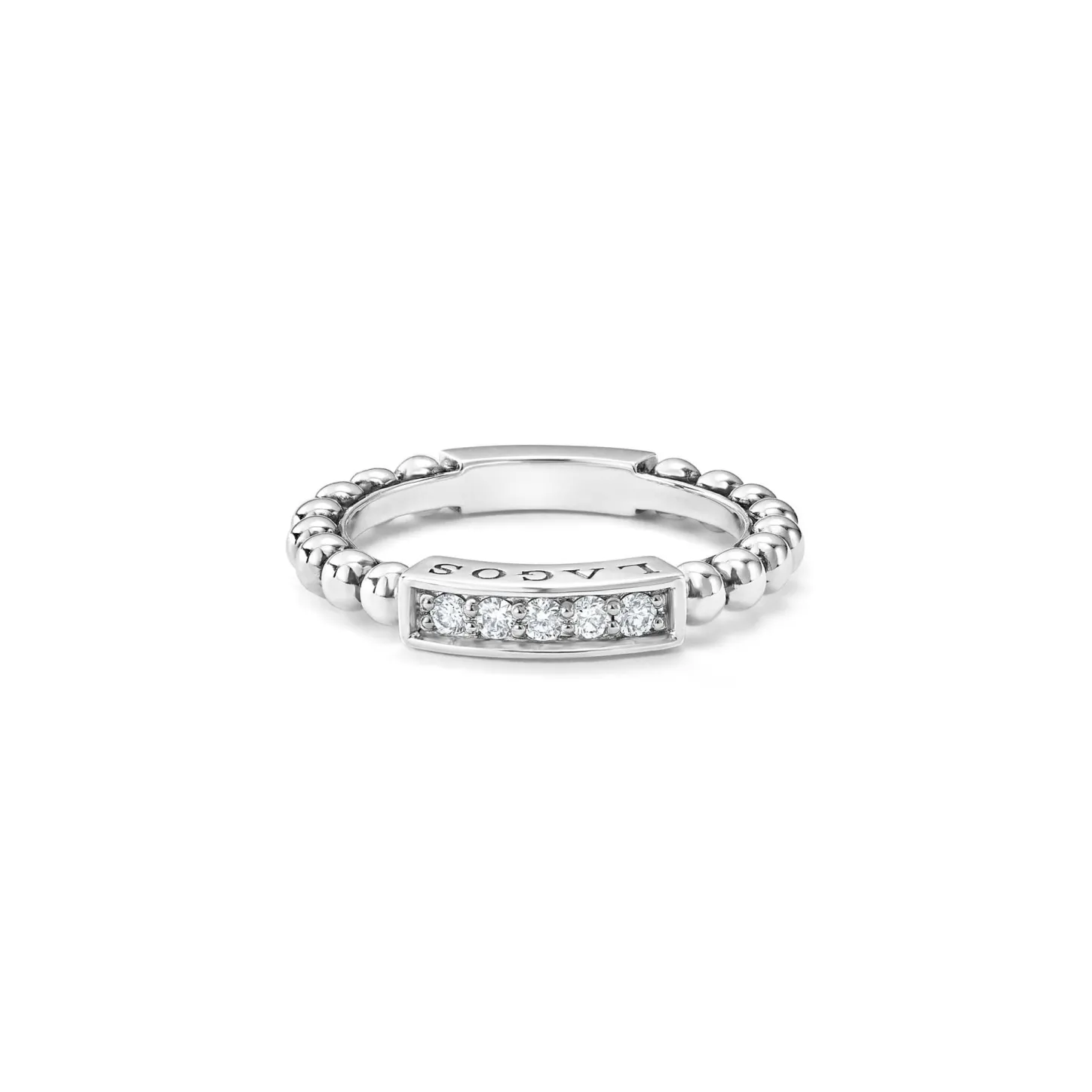 Diamond Stacking Ring With Sterling Silver Caviar Beading That Is Ideal To Pair With Other Stacking Rings. Lagos Diamonds Are The Highest Quality Natural Stones.