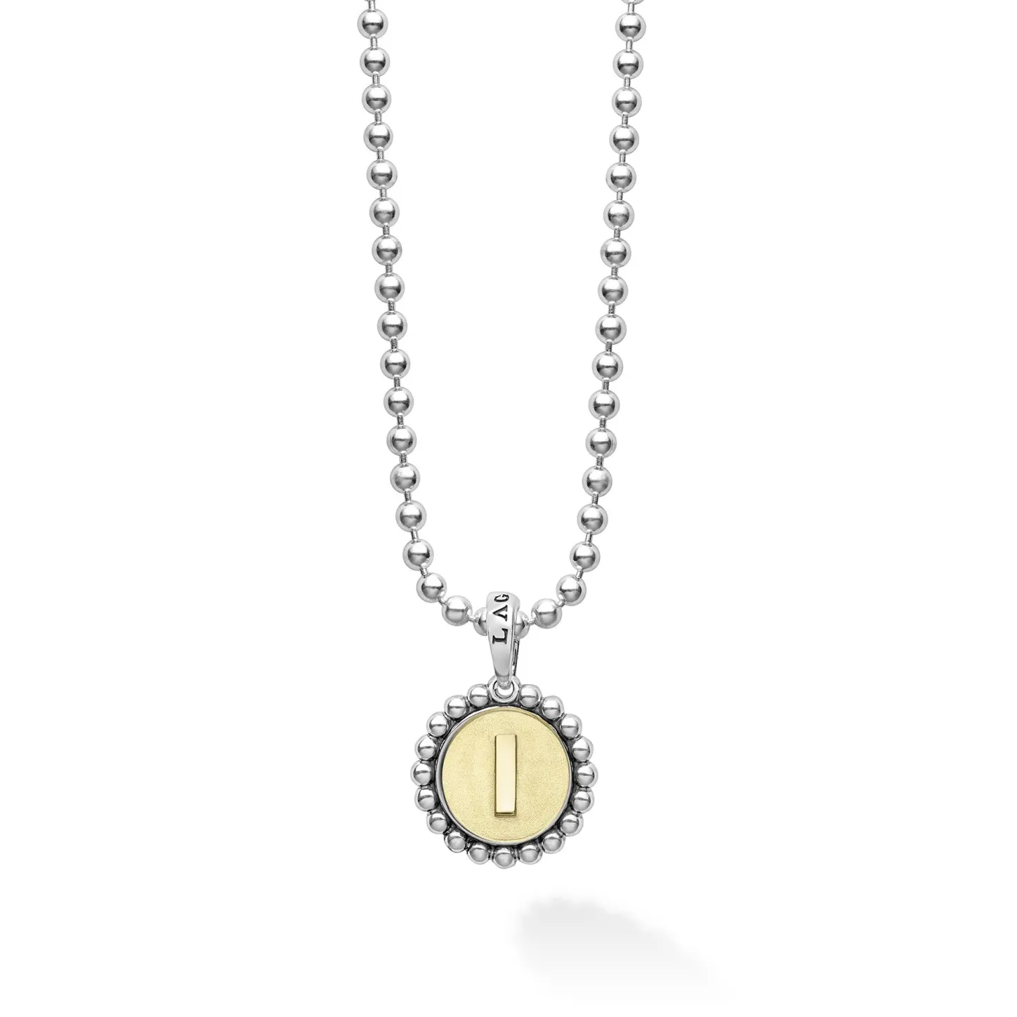 Our Signature Caviar Sterling Silver And 18K Gold Initial ‘L’ Charm Finished On A Sterling Silver Ball Chain Necklace.
