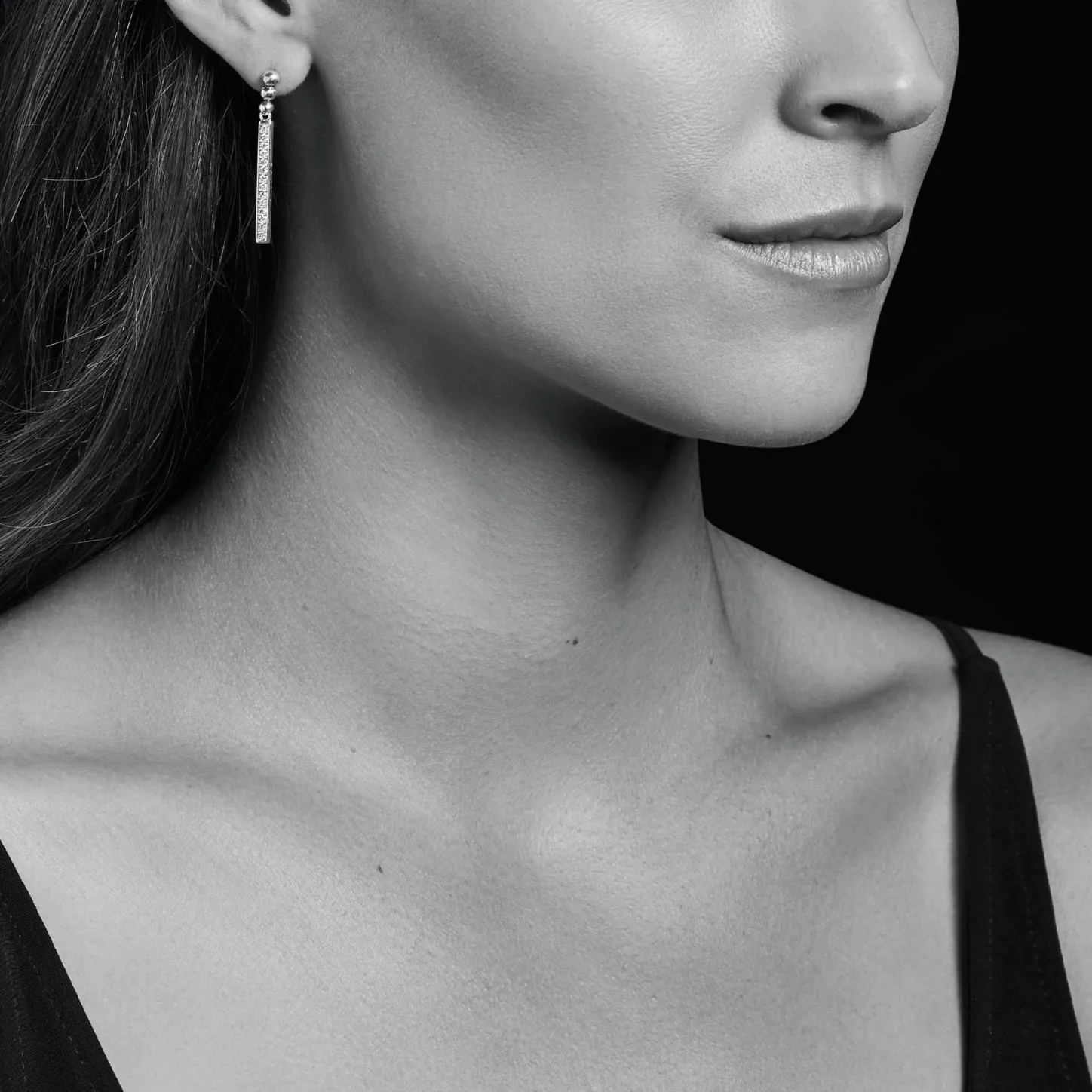 Linear Diamond Drop Earrings Set By Smoothly Polished Sterling Silver. Lagos Diamonds Are The Highest Quality Natural Stones.