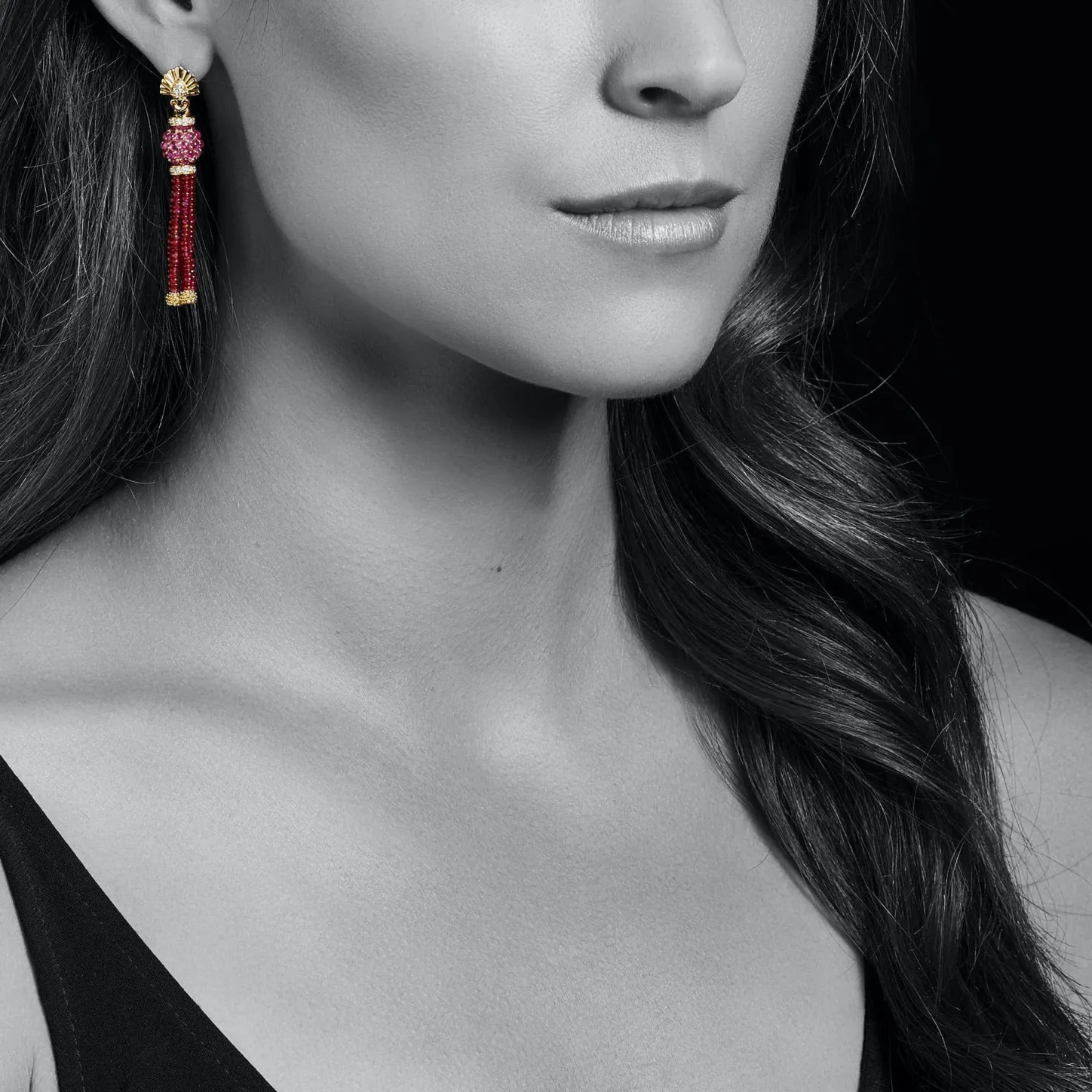 A Lagos Exclusive. Five Ruby Strands With 18K Gold Caviar Beading Form These Dramatic Drop Earrings.