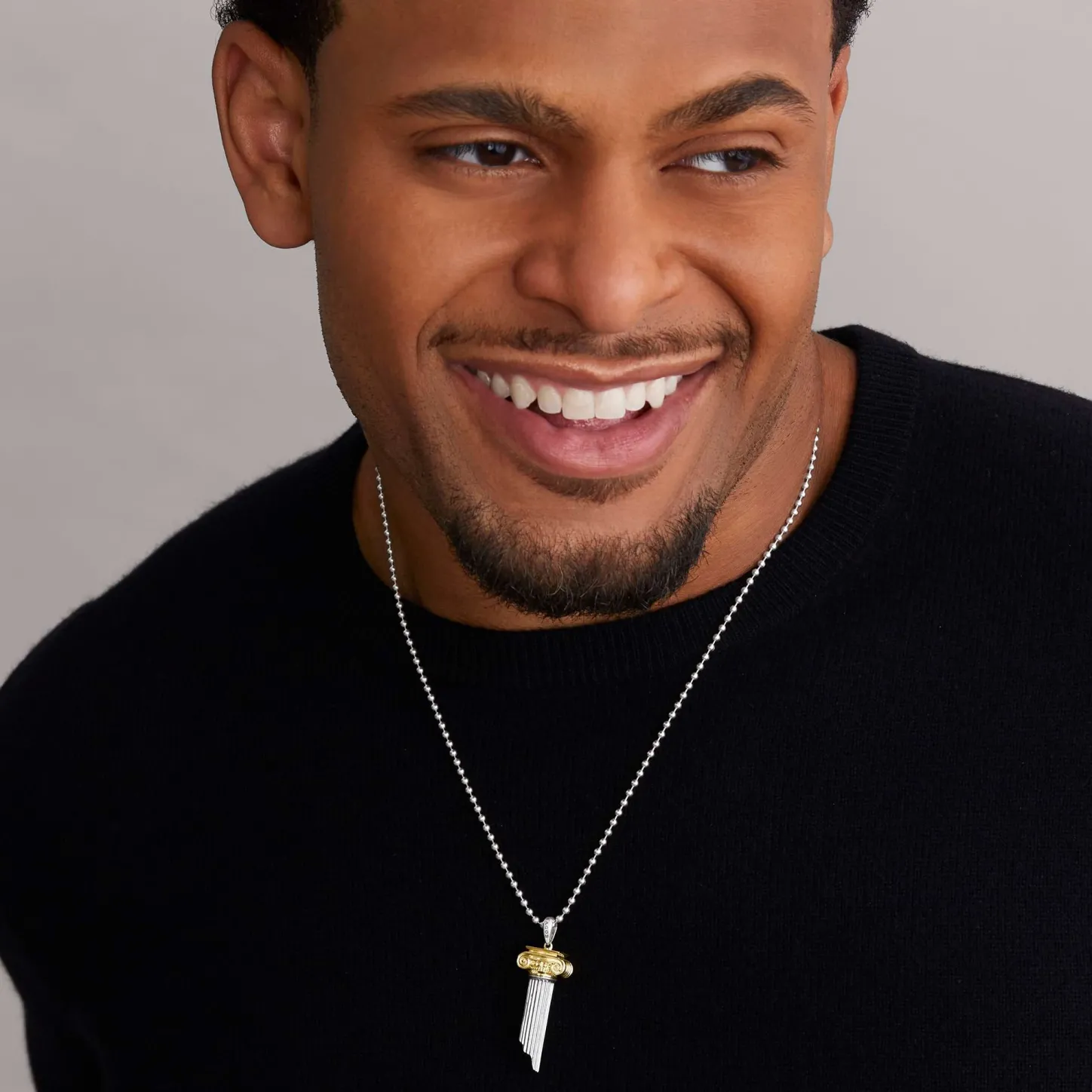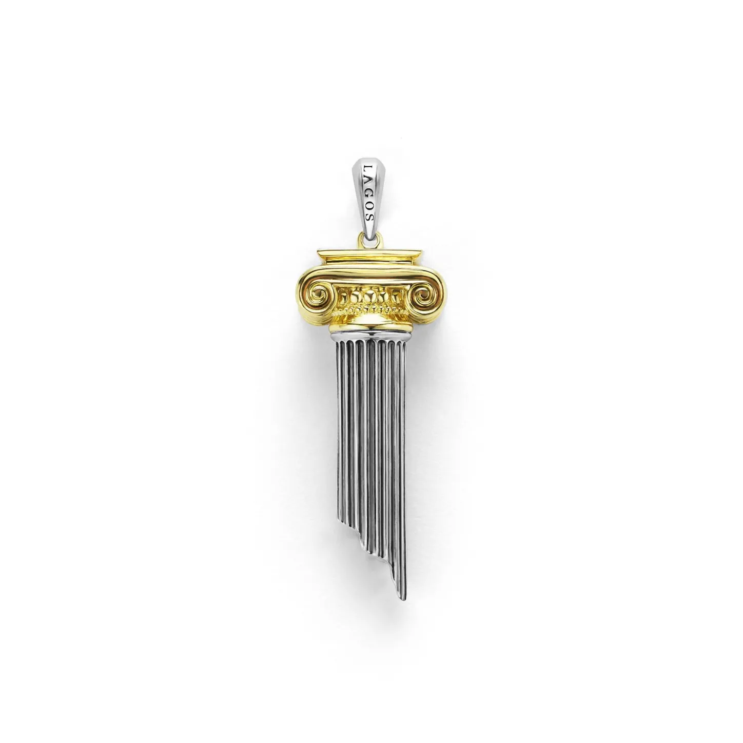 18K Gold And Sterling Silver In A Column Motif Form This Amulet. Perfect For A Bold Look.