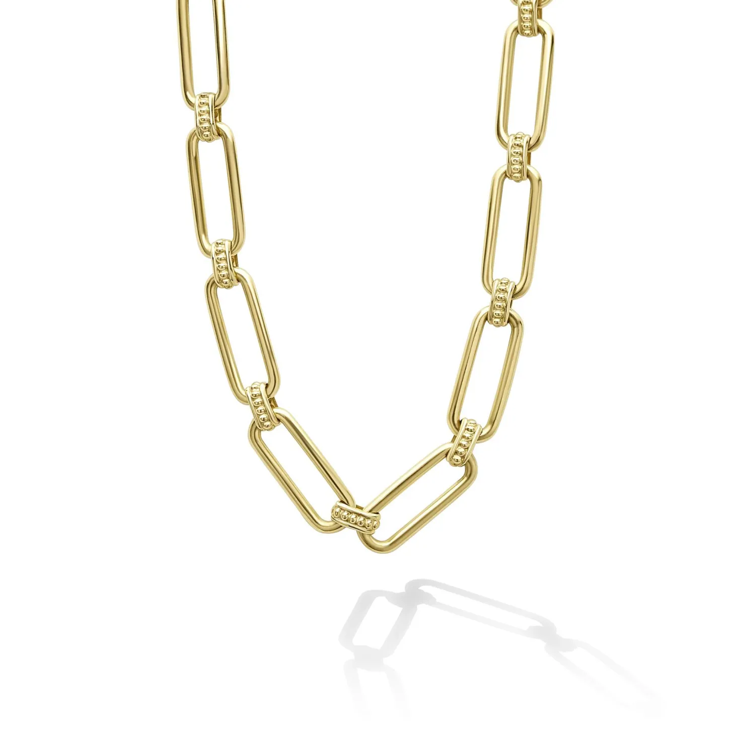 18K Gold Oval Flutes Form This Link Necklace Finished With A Toggle Clasp.